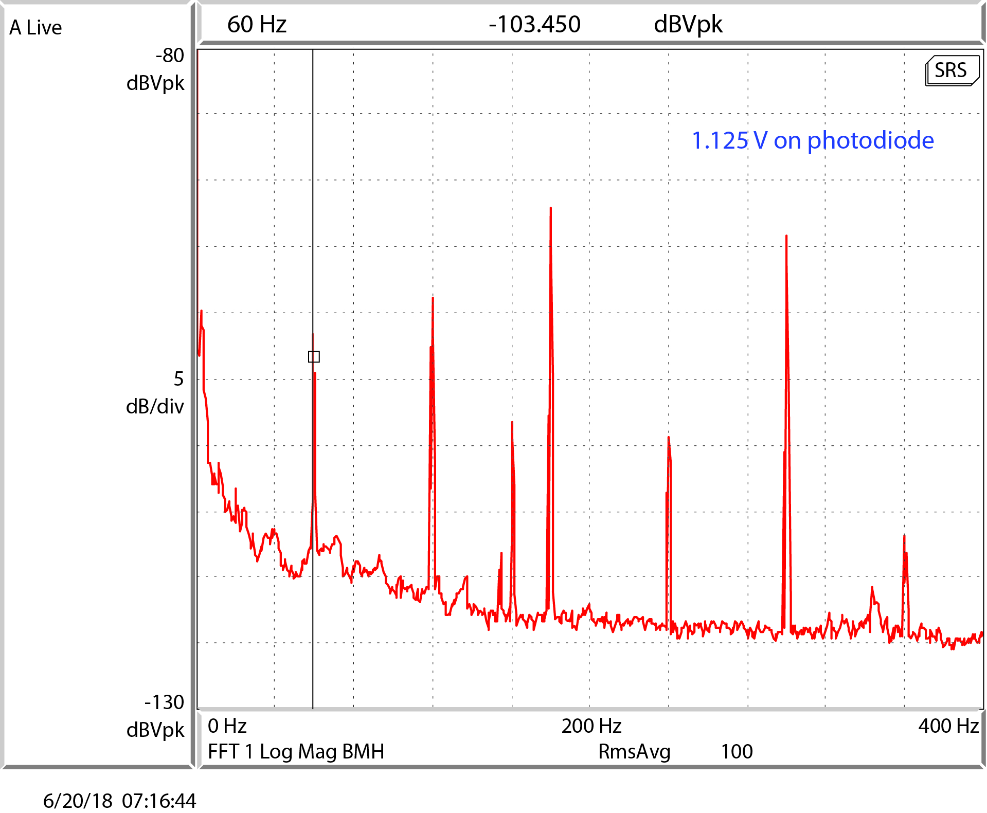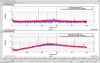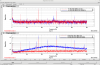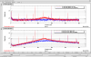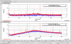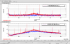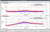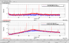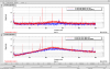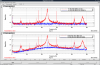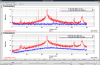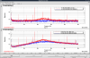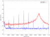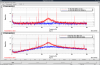 The measurements were recorded with the common gain set to 20 dB and the fast gain, 3 dB. Lowering the common gain to 16 dB did not improve things. In NE_CompA.png, the noise eater was off for the red trace and on for the blue trace. All other plots are relative to this plot and were taken with the noise eater on.