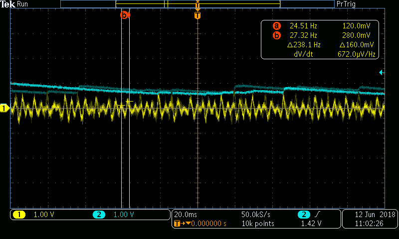 scope_34.png also displays the output of the common mode servo to the tune input of the VCO that