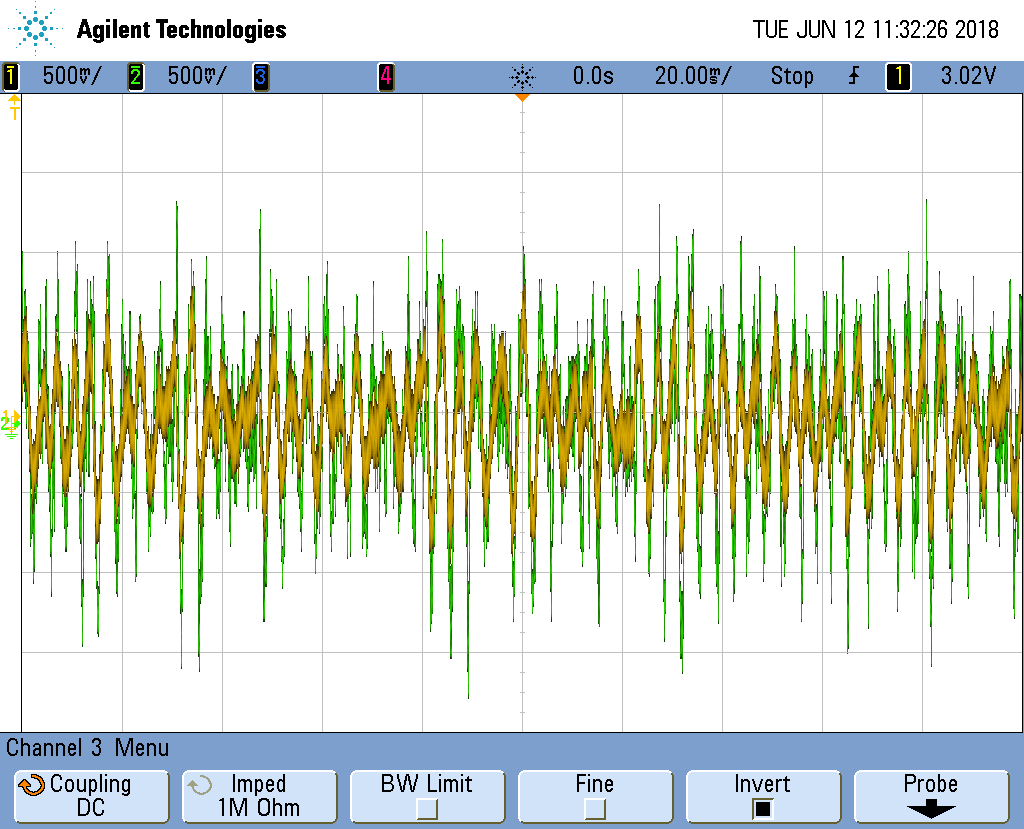 Also looking at the time series, not shown here, the min-max peaks are reduced nearly to pre June 1 levels when one channel is unplugged.