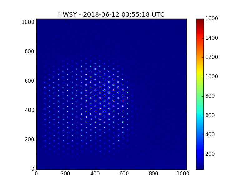 We fine tuned the centering of the beam on the HWS by adjusting the last mirror in front of the camera. We put back the mask and got images like the one shown below.