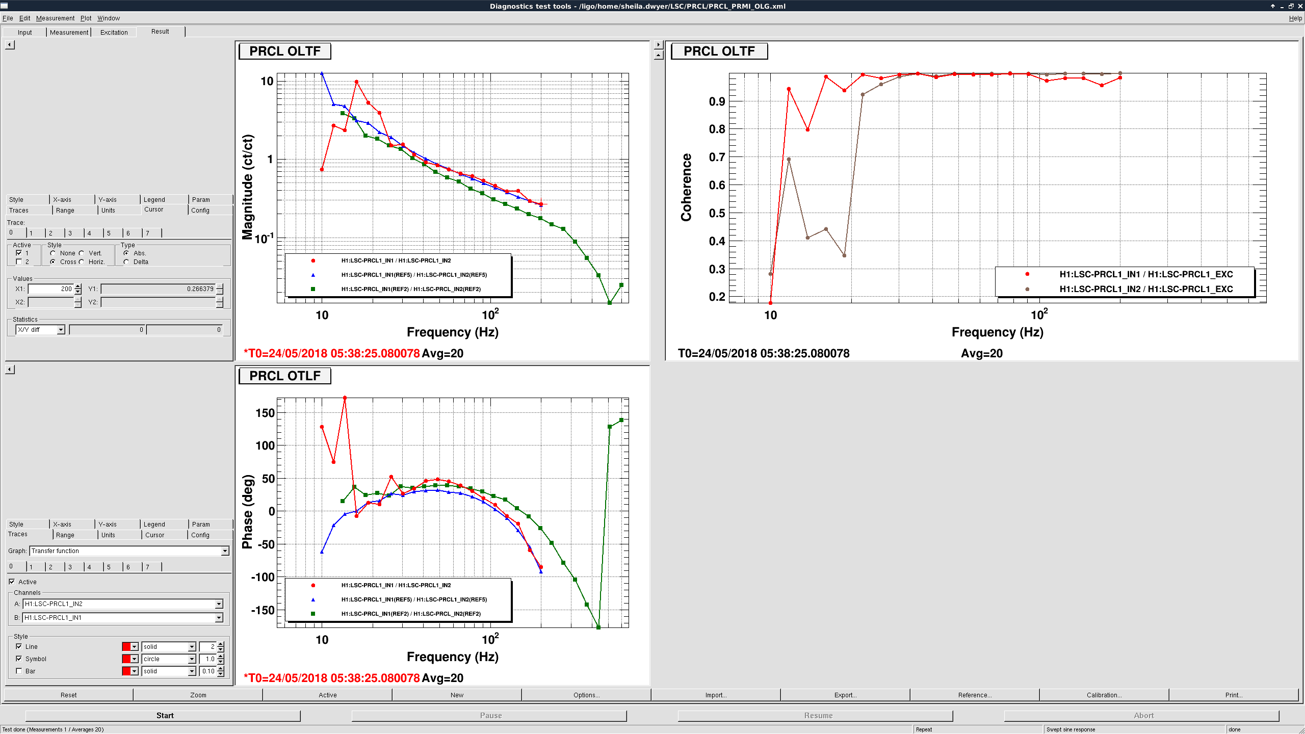 (labelled REFSIGNAL) and the gain slider should be adjusted. At the time of making this log entry the gain