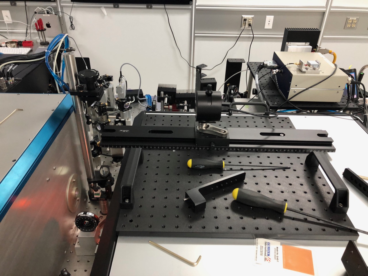 Today, we installed a periscope that allows us to sample the 35-W FrondEnd output relatively close to the laser output aperture (see attached photo) and measure the beam profile using a rail mounted on top of the FrontEnd box.
