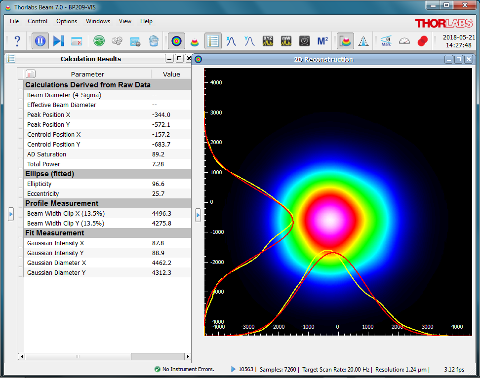 The beam parameters (waist size and location) estimated from least-squares fits to the data of gaussian beam propagation are shown in the attached plots as well as beam profiles measured with the ThorLabs BeamScan instrument both at the beginning of the rail (1 cm) and at the back of the rail (50 cm) are also attached.