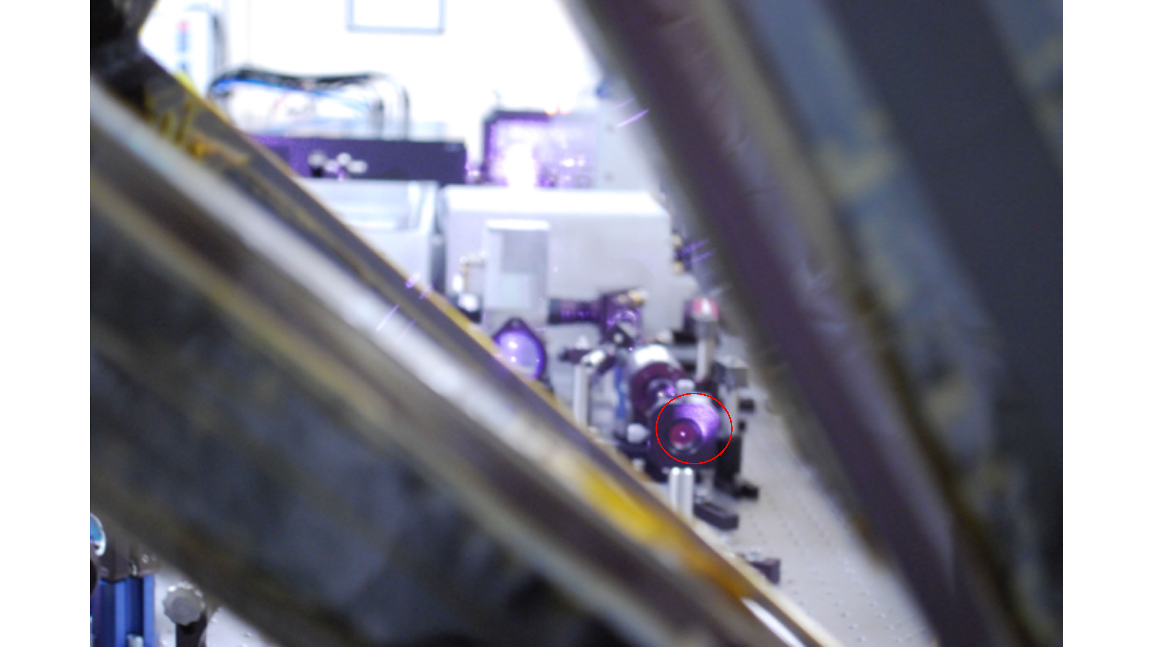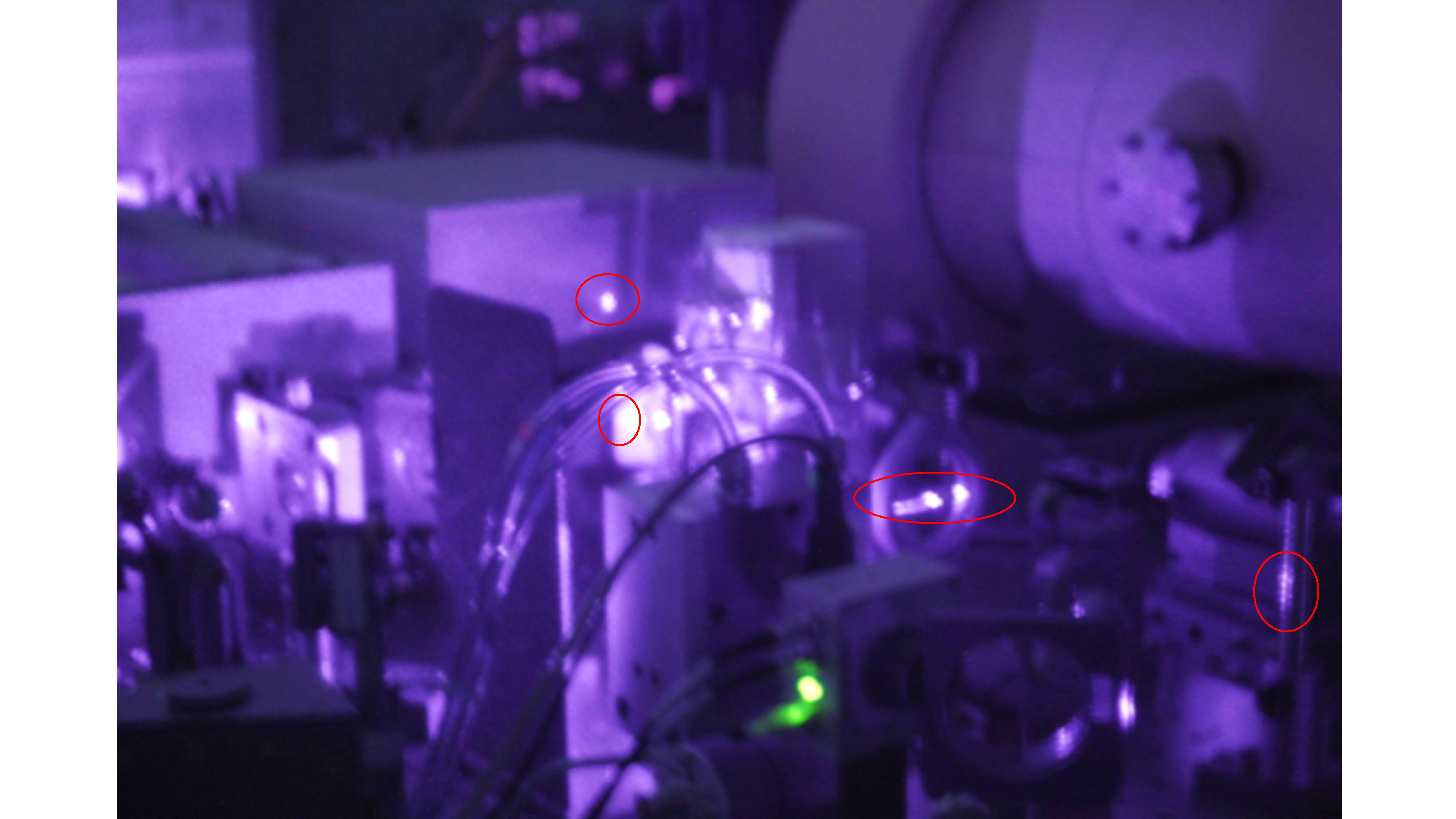 IR camera images of EOM - horizontal string of IR light is seen on the first lens after the EOM, should not be there.