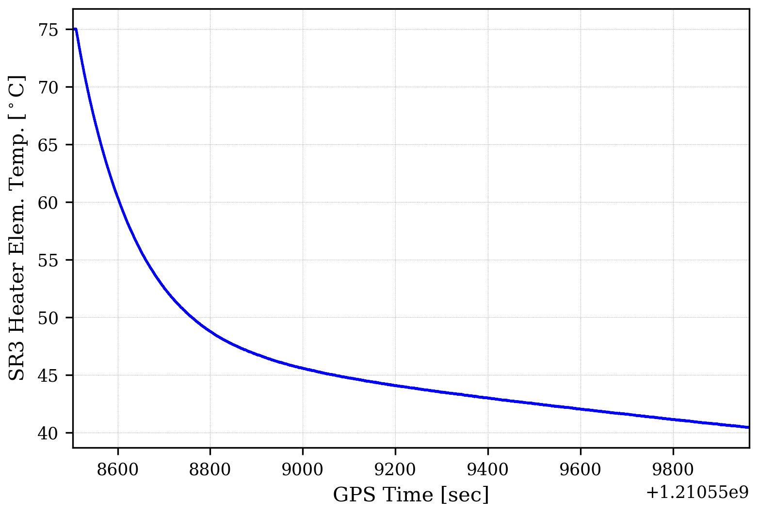 The power to the SR3 heater was then cut and the beam size was tracked as the temperature decayed.