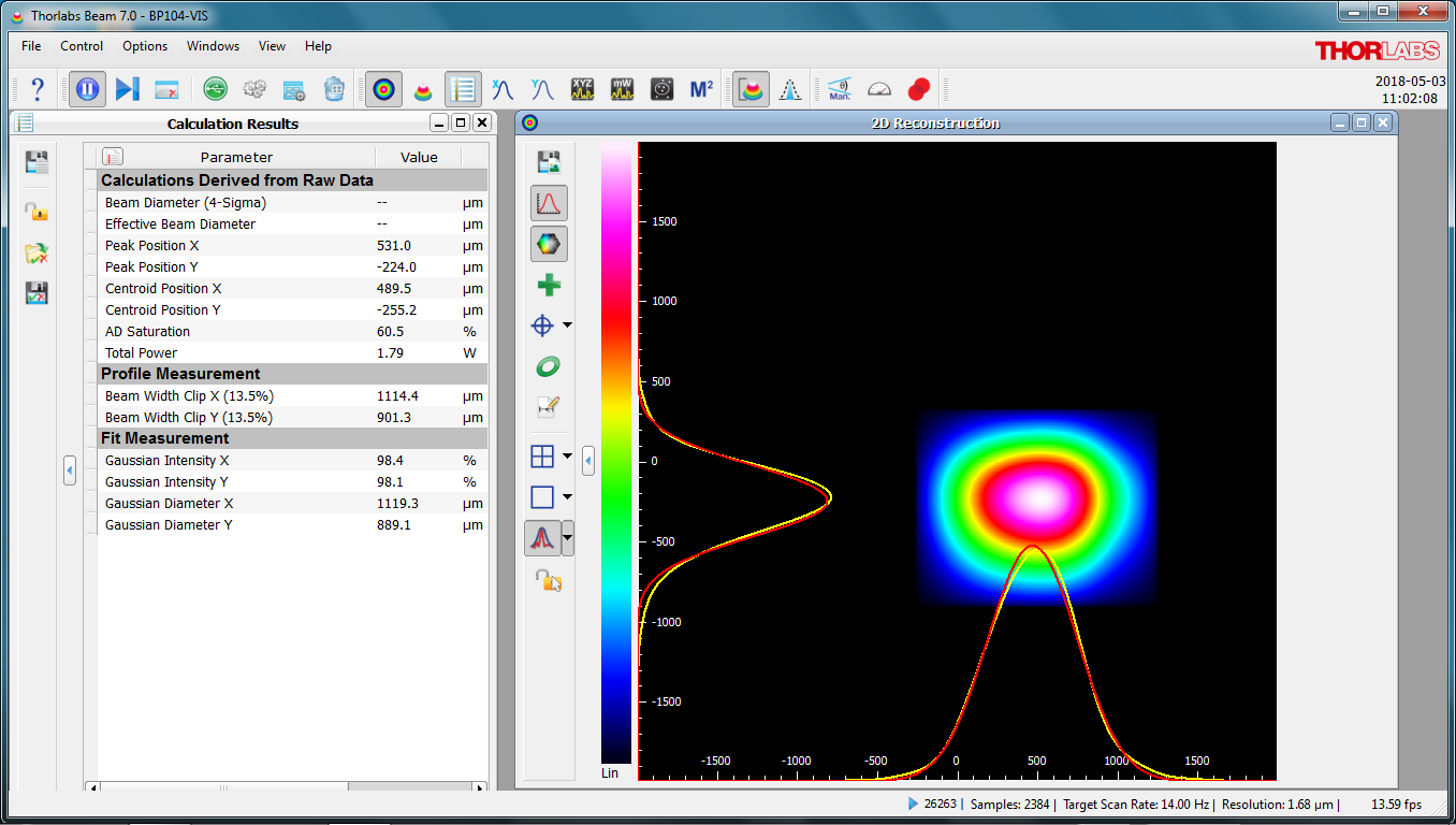 After the past two weeks of working with the 70-W amplifier, we think we finally have a good understanding of the modematching to the PMC. The PMC visibility is currently about 82%. This is limited by a "pedestal" that is apparently due to either a Front End output beam with this pedestal or to having too small a beam entering the 70 W amplifier. When an iris is installed upstream of the PMC and closed to the point that 10-15 W is occluded by the aperture, the PMC visibility increases to about 92-94%. This is corroborated by the Beam Scan data (see attached BeamScan data and images).
