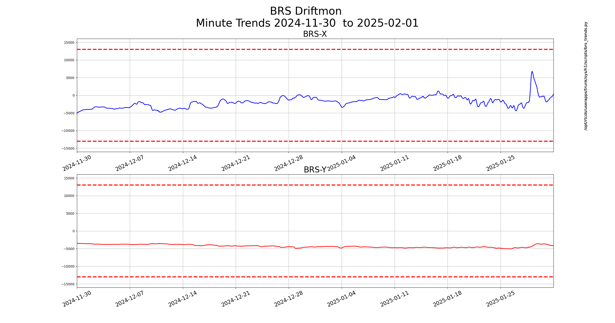 SRM_P did not change. SRM_Y moved down by 3 mircoradians. SR2_P decreased by less than a microradian. SR2_Y decreased by about 2 microradians.