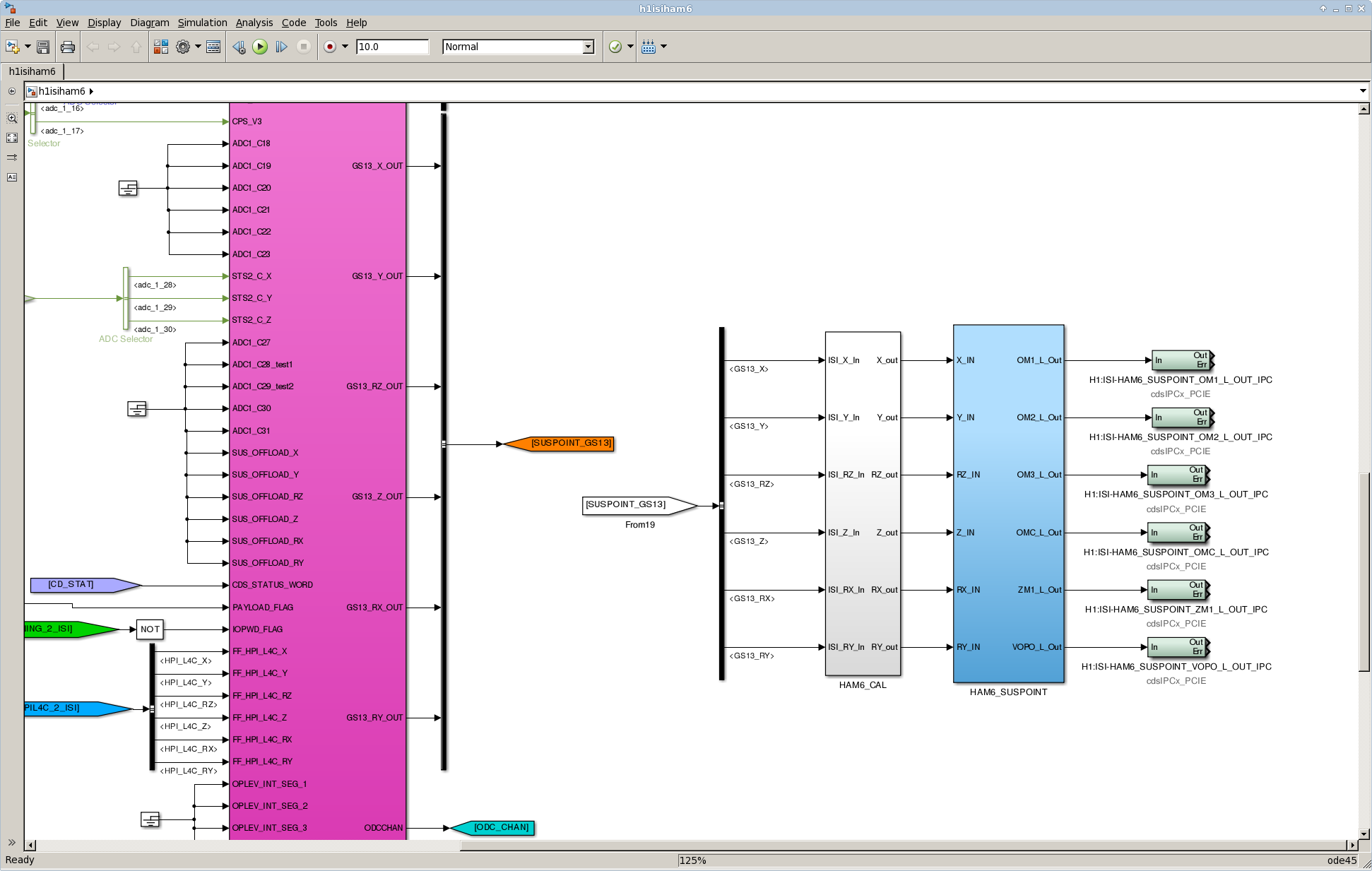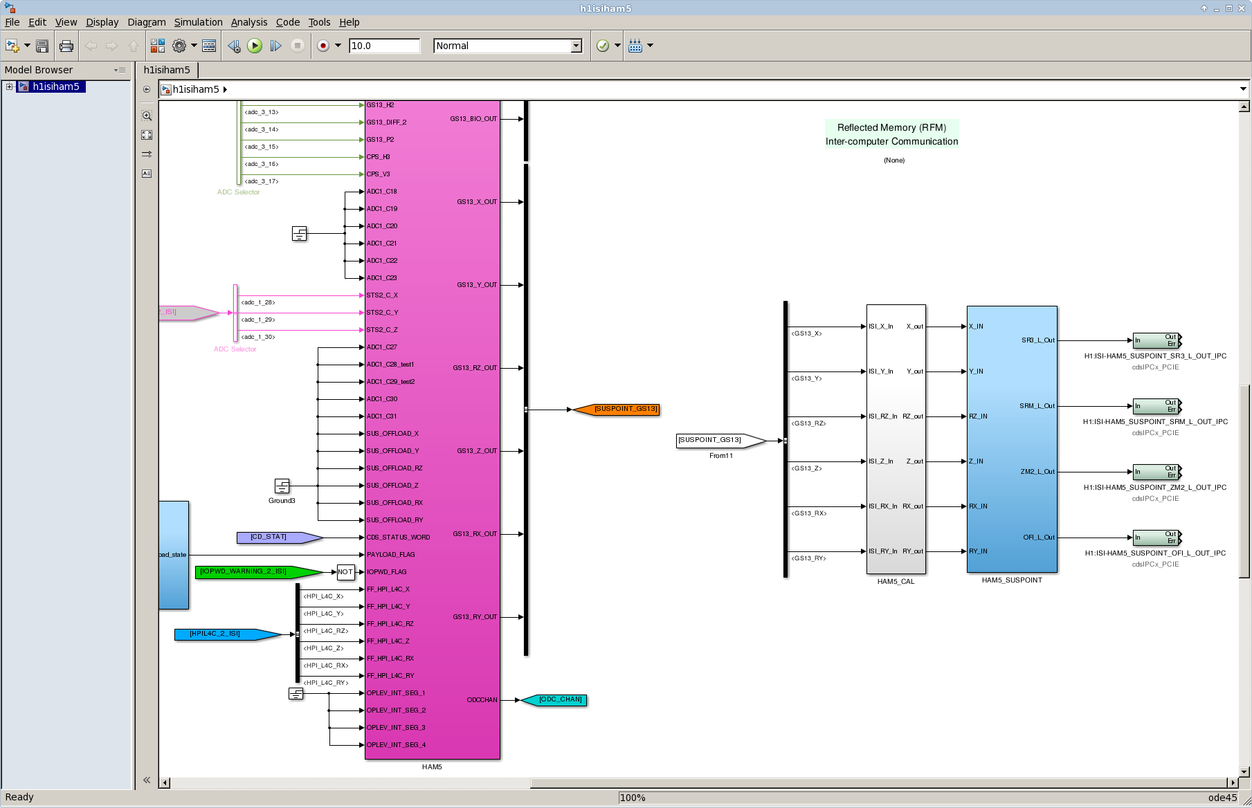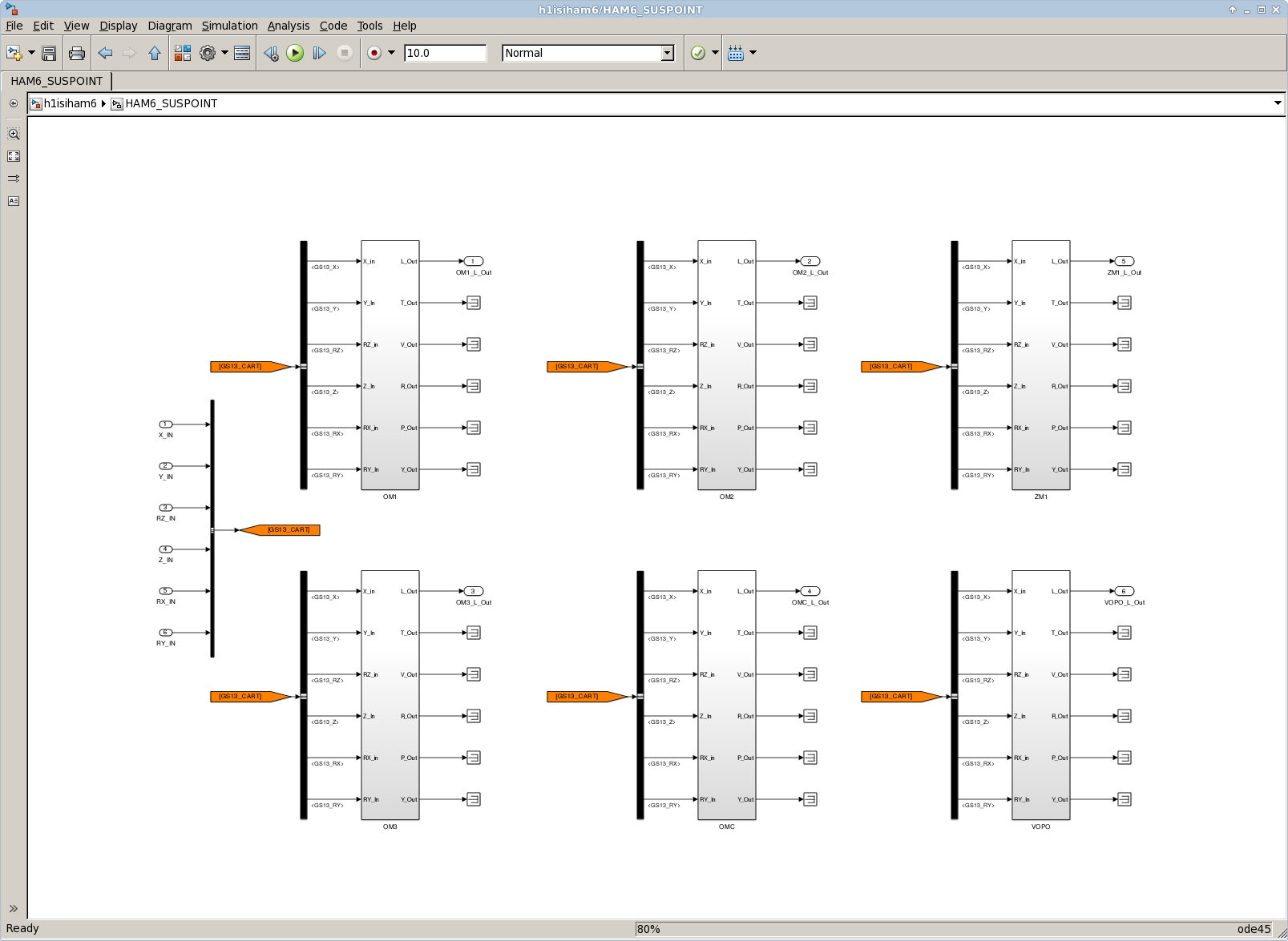 J. Kissel, D. Barker Now that we've moved the suspension point projections into the ISIs (e.g. LHO aLOG 26363), it's much easier to add new interesting suspension point projections to each platform. I've added new projection infrastructure to ISI HAM2, ISI HAM5, and ISI HAM6 to include - ISI HAM2: Connecting the pre-existing IM1, IM2, IM3, and IM4 projections' longitudinal output via dolphin IPC destined to be picked up by h1oaf.mdl. - ISI HAM5: Creating new SUSPOINT projections for the OFI and ZM2 with associated new senders via dolphin IPC to the h1oaf.mdl. The new projections are stored in the frames at 4096 Hz. - ISI HAM6: Creating new SUSPOINT projections for VOPO and ZM1 with associated new dolphin IPC senders to the h1oaf. The new projections are stored in the frames at 4096 Hz. Also, creating new dolphin IPC sensors for the pre-existing longitudinal output for the OMC, and OM1, OM2, and OM3. - OAF: In OAF, all corresponding new and newly added longitudinal suspension point projections were added as inputs to the giant cavity basis matrix, with new output elements, - "IOL" for "Input Optics Length," imagined* to be the coherent sum of IMs L, to recreate path length displacement between the IMC output and PRM IFO input - "ASL" for "Anti-Symmetric Length," imagined* to be the coherent sum of the OFI, the OMs, and the OMC, to re-create path-length displacement between the SRM IFO output and the OMC - "SQZL" for "SQueeZe Length," imagined* to be the coherent sum of the VOPO and the ZMs to recreate the squeezer path length displacement between the VOPO and the OFI *I say "imagined to be" because that's what I naively think should go into the coherent sum to recreate the path length, but the matrix has been setup that it can be the coherent sum of any optic, if we so chose later. Attached are screenshots of the relevant parts in each model that were affected by this change. We'll make the modifications to each HAM ISI's custom SUSPOINT screen in due time. We don't yet have projections for any of these new suspensions (or from the OMs), but I'll eventually work with the systems group to get something good enough. Finally, of note, I've *removed* the last of the suspension point projection displays from the OM ALL and RM ALL MEDM screens, as has been done some moons ago for all other SUSs.