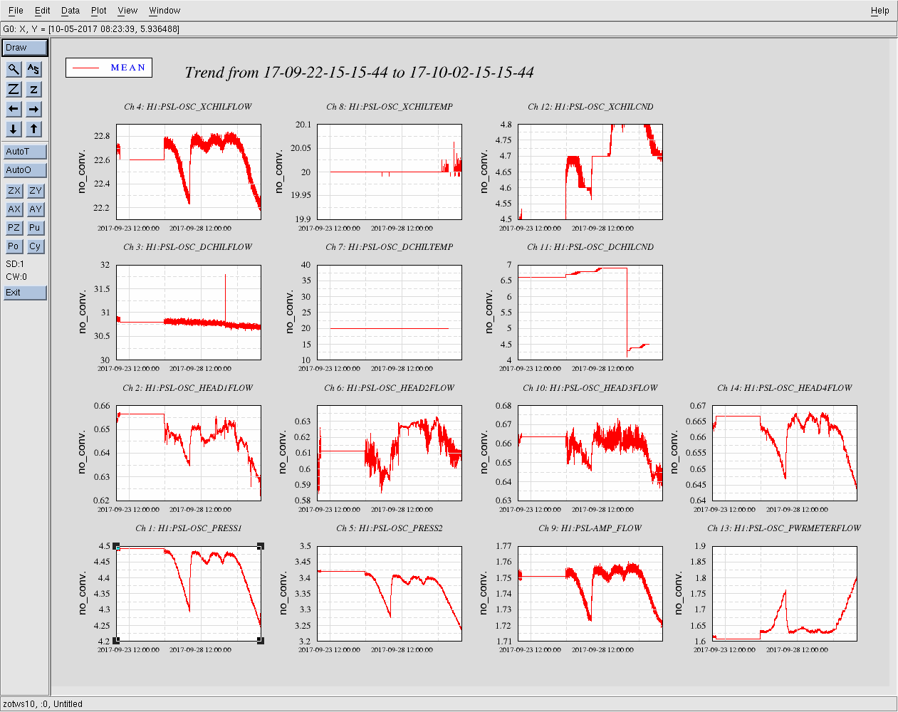There is evidence of some Beckhoff glitch that is visible. Oscillations in environmental plots are attributed to environmental controls being on for long periods of time with multiple incursions due to ongoing IO work. Chiller plots look a bit odd and have been brought to the attention of Jason O.