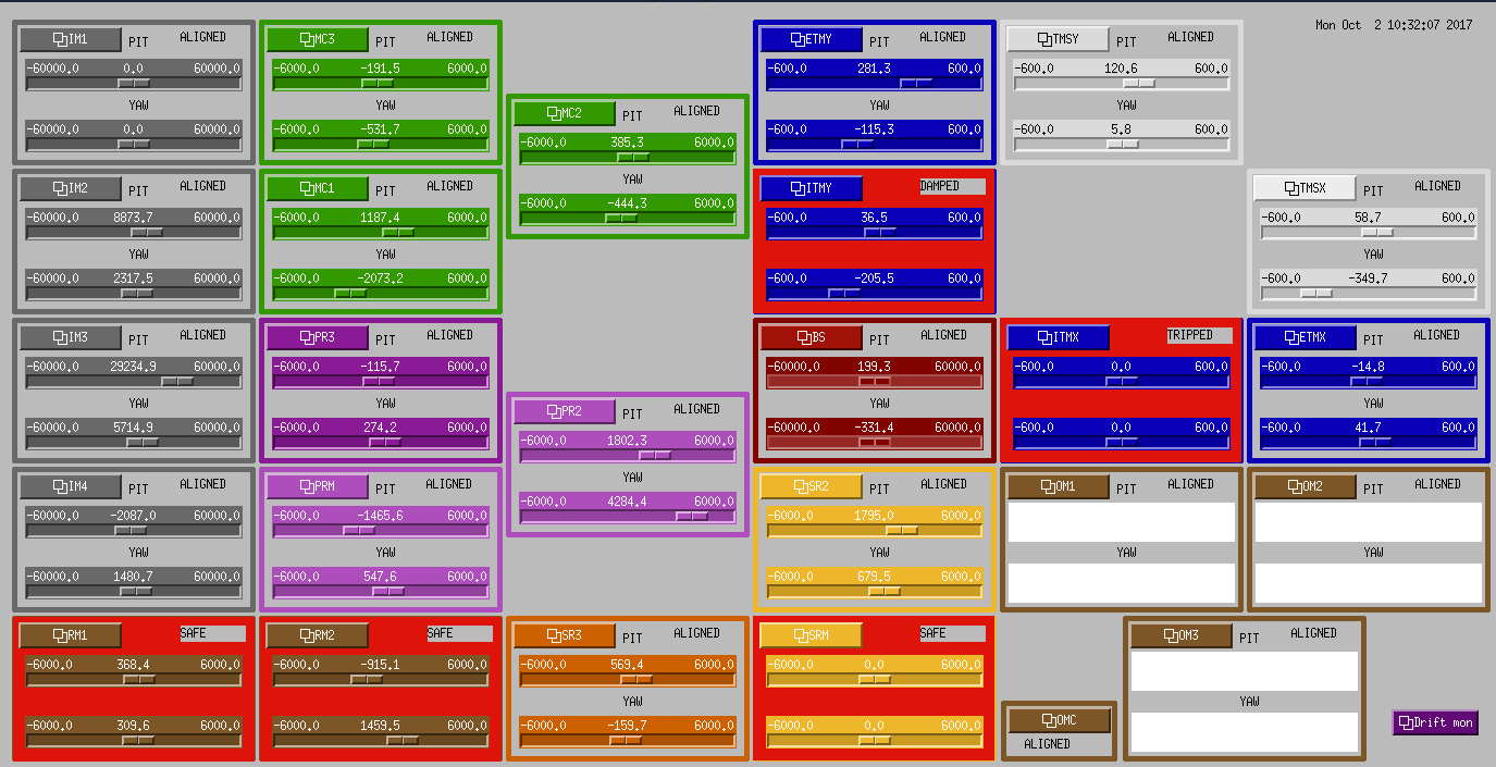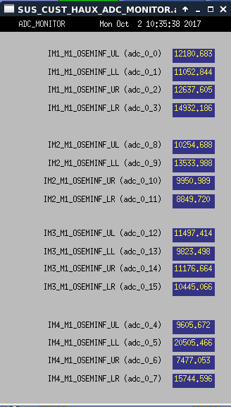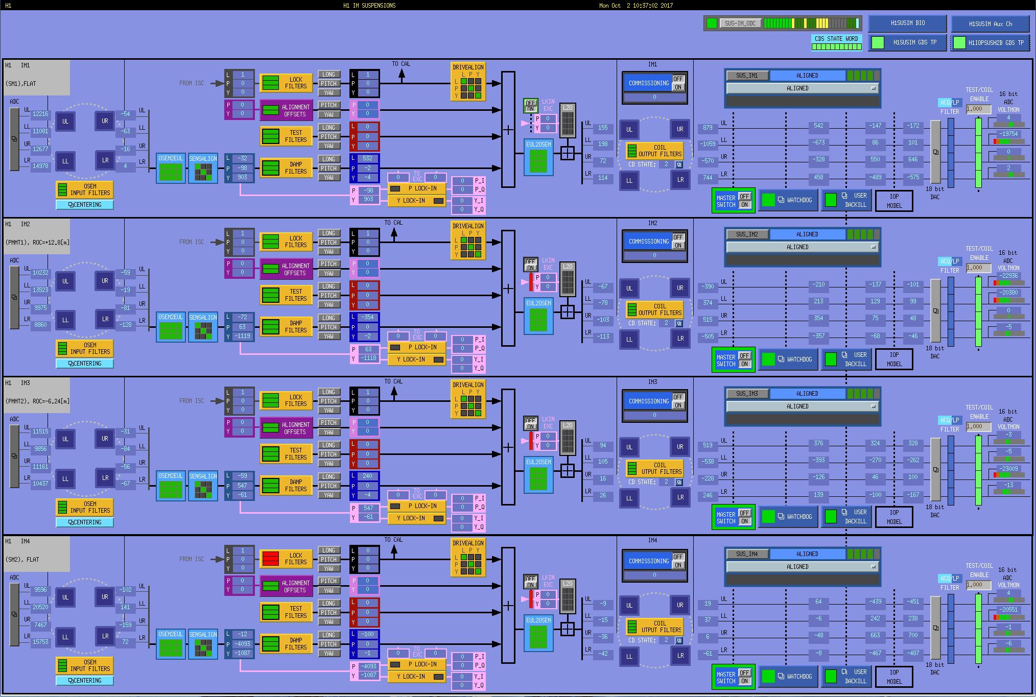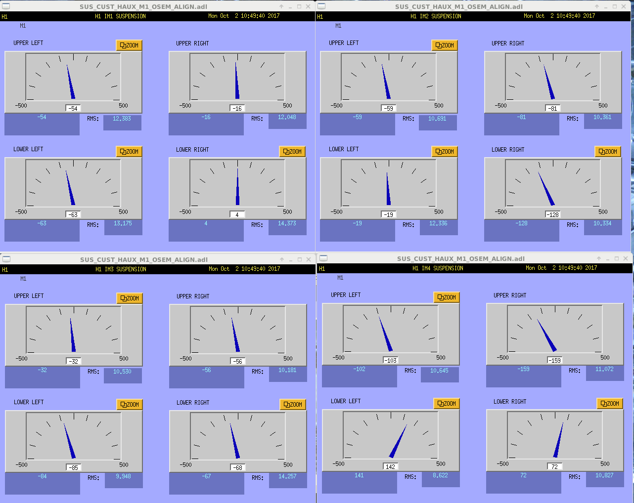 IM OSEM values, zero alignment offsets, urad and counts, and IM_ALL screen, also IMC current alignment (not yet flashed)