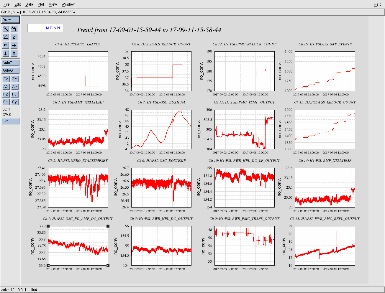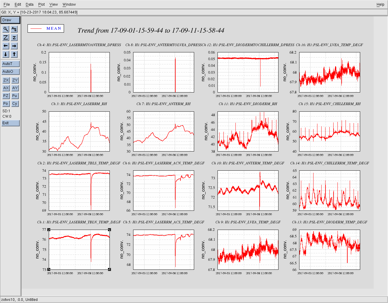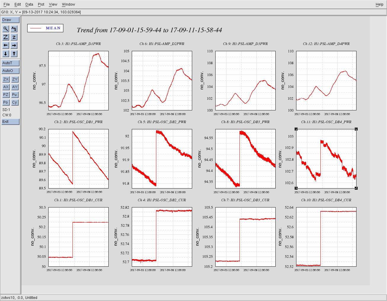 Powers and ensuing temps reflect the weekly current increase. The PMC "creep" downward in trans is evident as is it's, inverse, refl counterpart. I'm not sure what's going on with the chiller data having not spoken to those directly involved. I am confident due to the scheduled manifold work that these chiller conditions are being closely monitored by those directly involved.