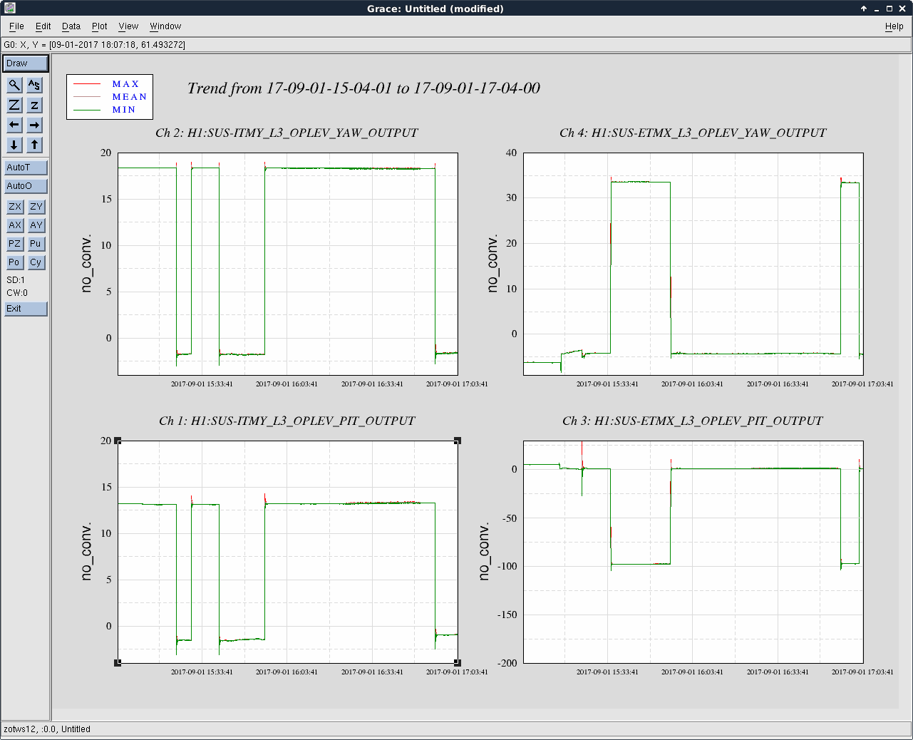 NOTE: Tomorrow morning Kyle would like to enter the end stations to transfer TMDS equipment from EX to EY (this is for discharging ETMy on Tuesday Mainteance).