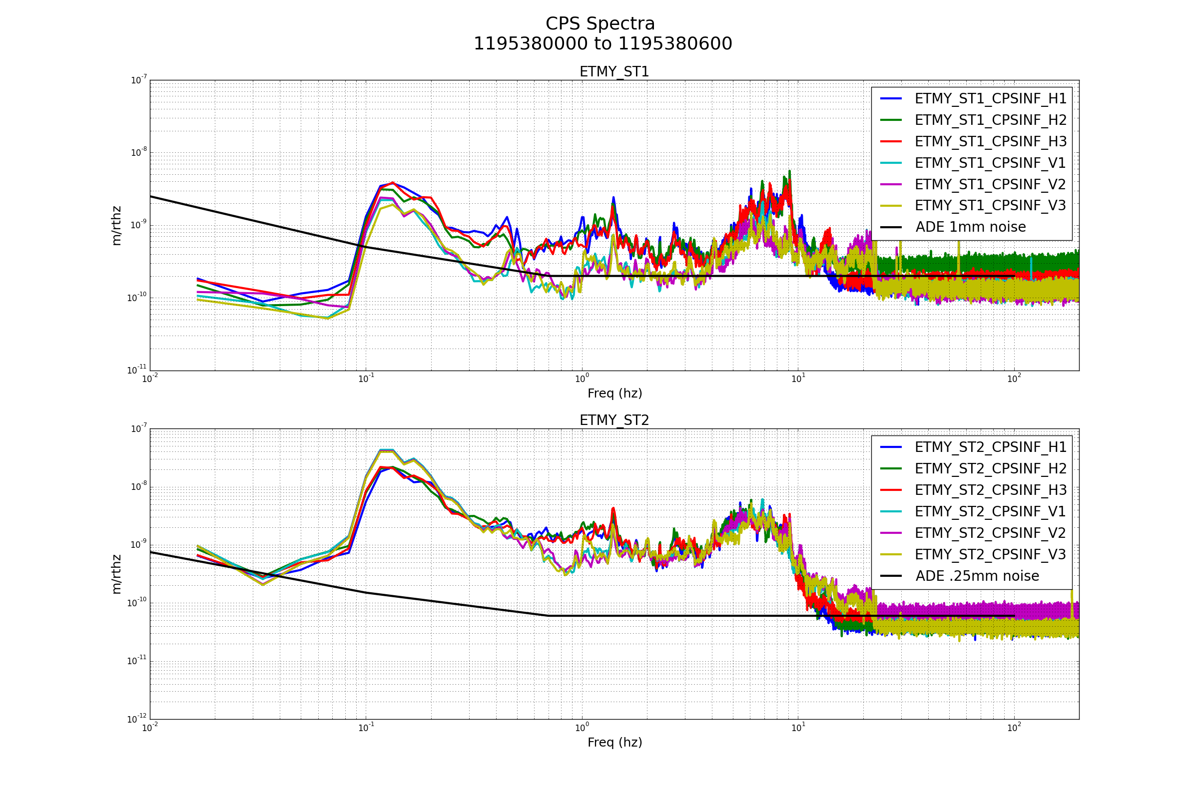 First attached plot is the St1 Y motion measured by the T240 (thick lines), their RMS (dashed) and the ground motions (thin), red traces are for the swarm filters, blue are for the broadband filter we used during O2. Second plot shows the comparison of the CPS (SCSUM_CPS, thick lines), the cps RMS (dashed) and ground again (thin lines), again red traces are for the swarm filters, blue are for the O2 configuration. Last attached plot shows the two filter designs in displacement, and their complements, stolen from the DCC doc. Blends were not changed during these measurements.