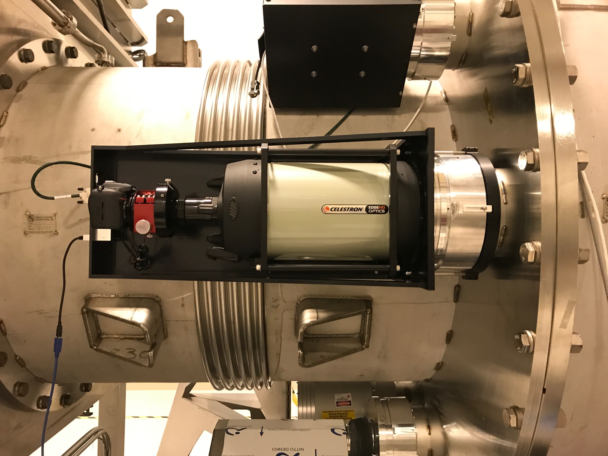 With the newly modified telescope mount parts in hand, we finally successfully mounted the ITM camera (some refer to it as the ITM PCal camera, which I hope would cease since in reality is has nothing to do with PCal whatsoever) on the X arm A-1 spool adapter, port VP2. We took photos locally as we didn't have time to embark on setting up the remote, Control Room accessibility, although the power and ethernet cable were available. We will work on setting up remote access at a later time. Gate valves were soft closed and all lasers were shuttered during installation.