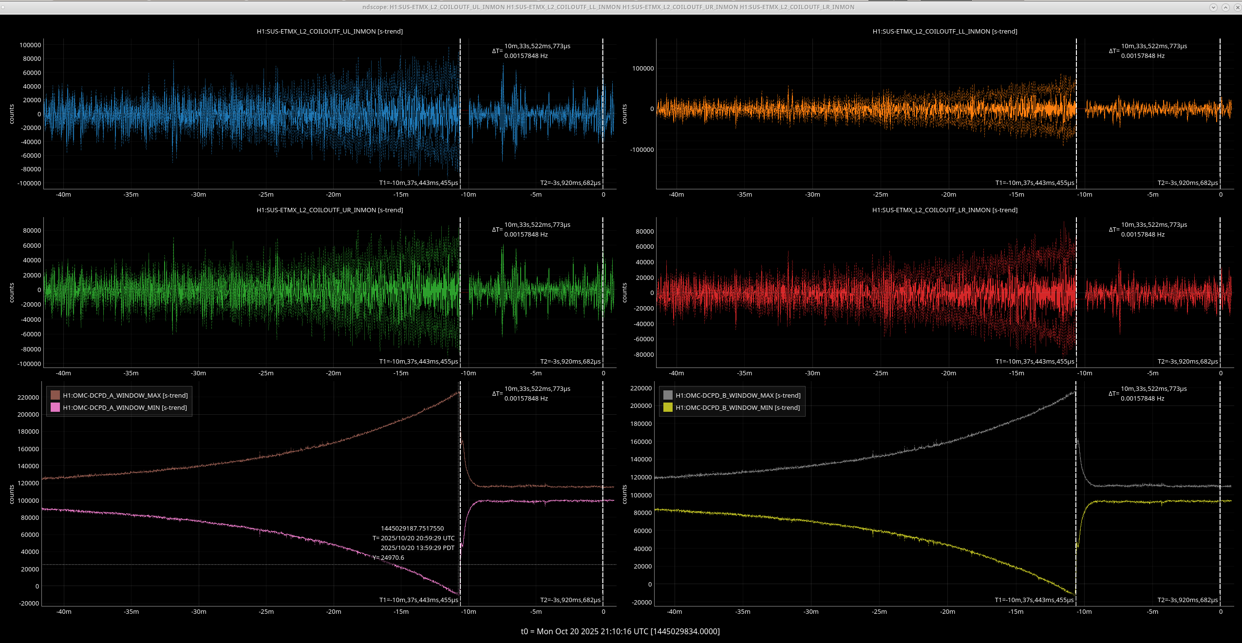 20:17 UTC - Back to COMMISSIONING. Then, I ran the SCAN_OPO_TEMP guardian but once again, it unlocked the FC and the values got reset and had to be adjusted by hand. This is where I realized that the OPO_TEMP unlocking the FC might be unrelated and that I may have to adjust the OPO_TEMP manually. (went back to observing accidentally for a minute or two)