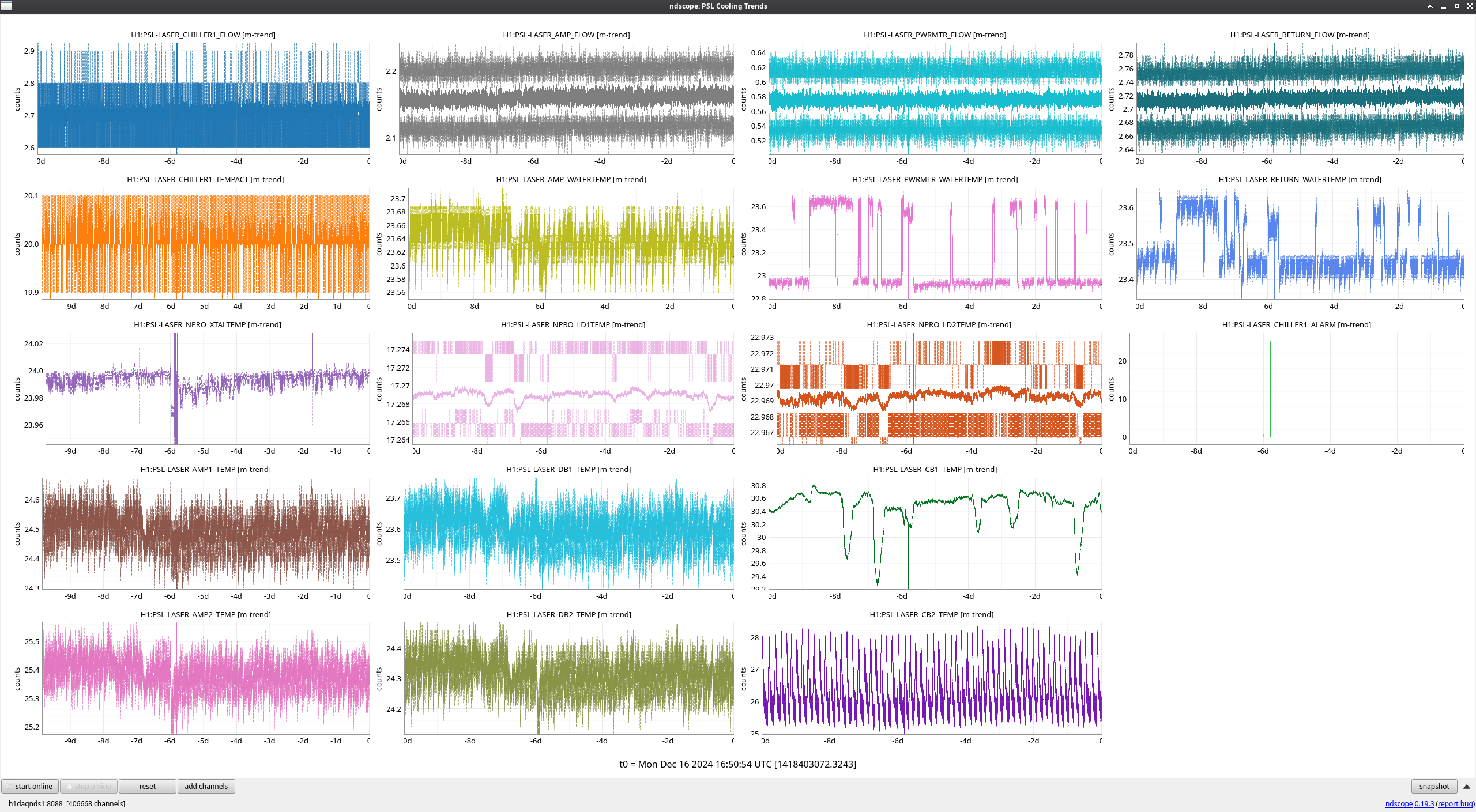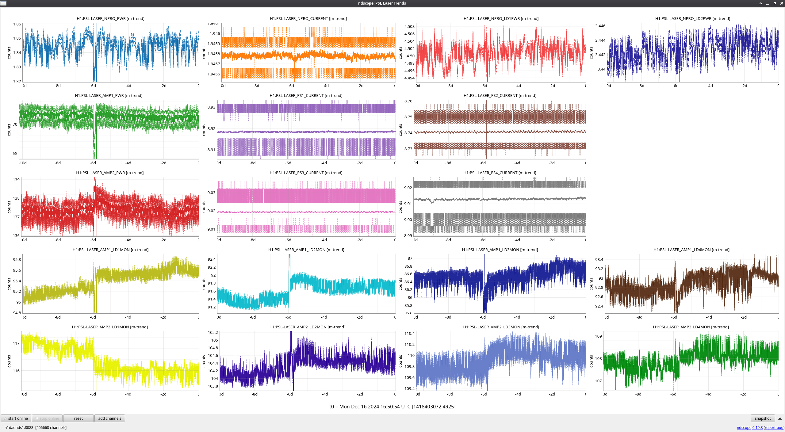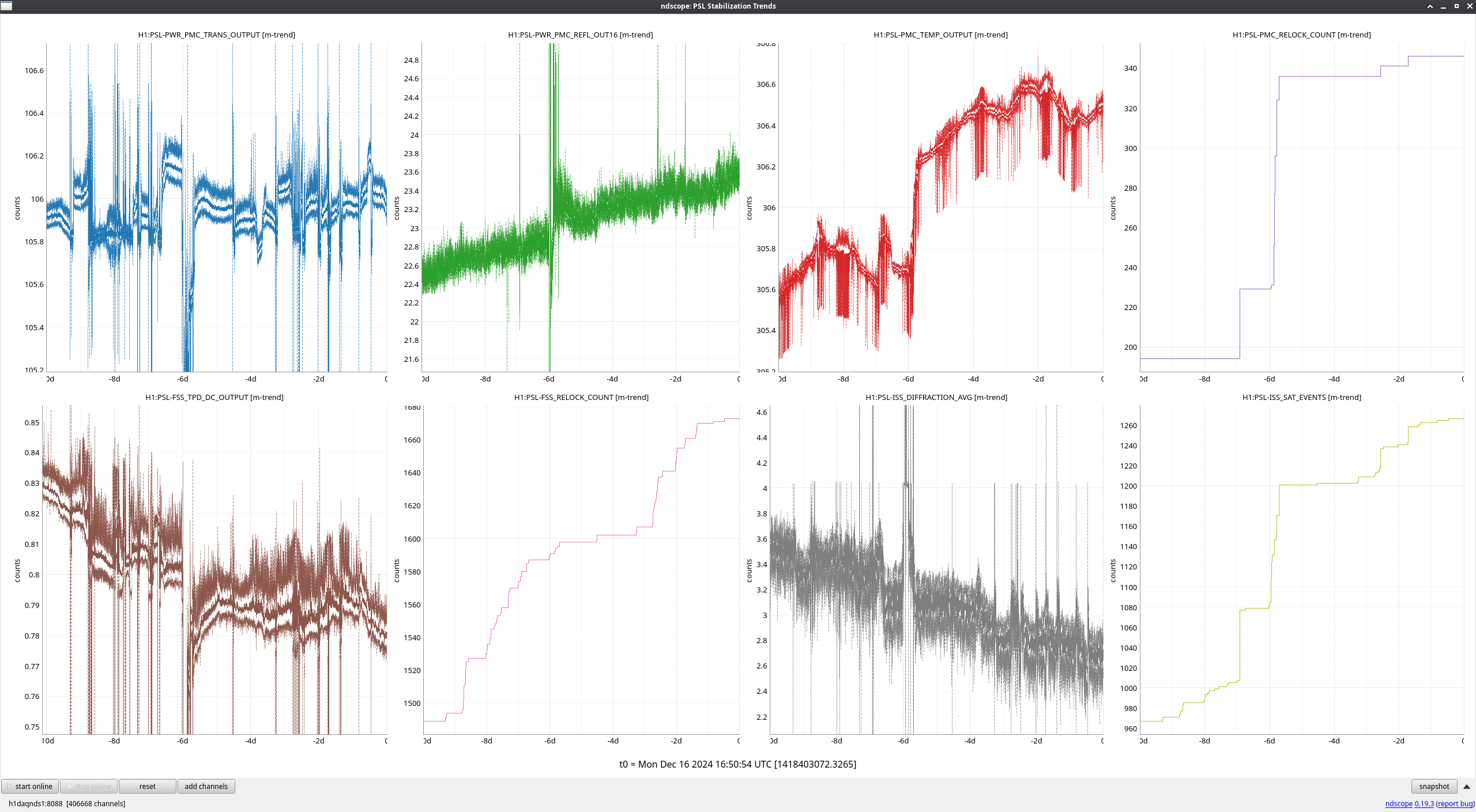 The PMC mode-matching check done in the enclosure last Tuesday is clearly seen on many trends.