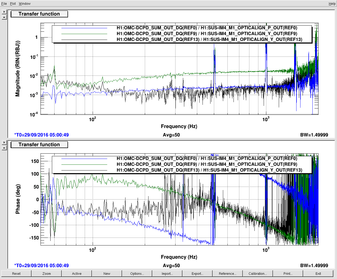 We drove the IM4 in PIT and YAW, and measured the beam jitter to OMC_DCPD_RIN transfer function. We calibrated the drive signal in Relateve Beam Jitter (RBJ), so we can directly compare it with measured beam jitters at other places (for calibration, see below).