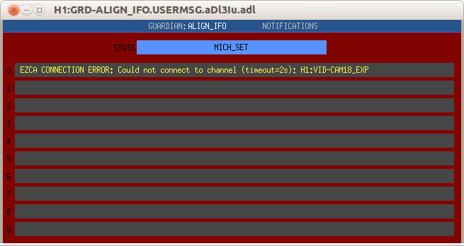 SHIFT SUMMARY: Still recovering from power outage over the weekend. Got through Initial Alignment with only mild struggling. Digital video camera 18 connection error gave us grief during MICH_DARK locking (see screenshot). Also see screenshot of IFO Align for a starting place tomorrow as we expect the alignment to drift for some time due to thermalizing. DIAG_MAIN has been giving an error for H1:PEM-EX_WIND_ROOF_WEATHER_MPH all night.