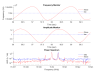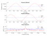 Arm and power recycling cavity powers, as well as test mass pitch control signals. The test masses have to compensate for radiation pressure, making the pitch control signal proportional to the arm cavity power.