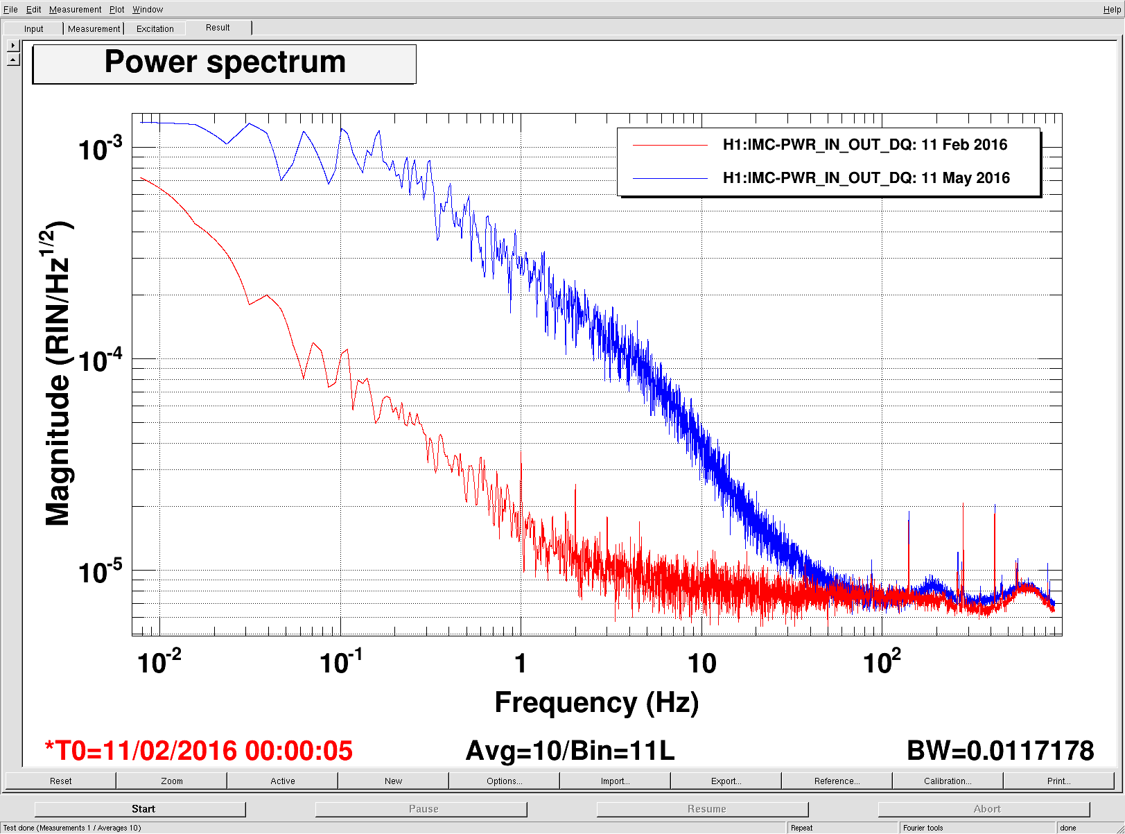 The RIN into the vacuum is not very good (red and pink traces on the first plot). The second screen shot shows the RIN into the vacuum now with the ISS on versus 00:00:00 11Feb2016 with the ISS inner loop on. It's pretty clear that we're not getting the same RIN as we were during 01 with the inner loop closed.