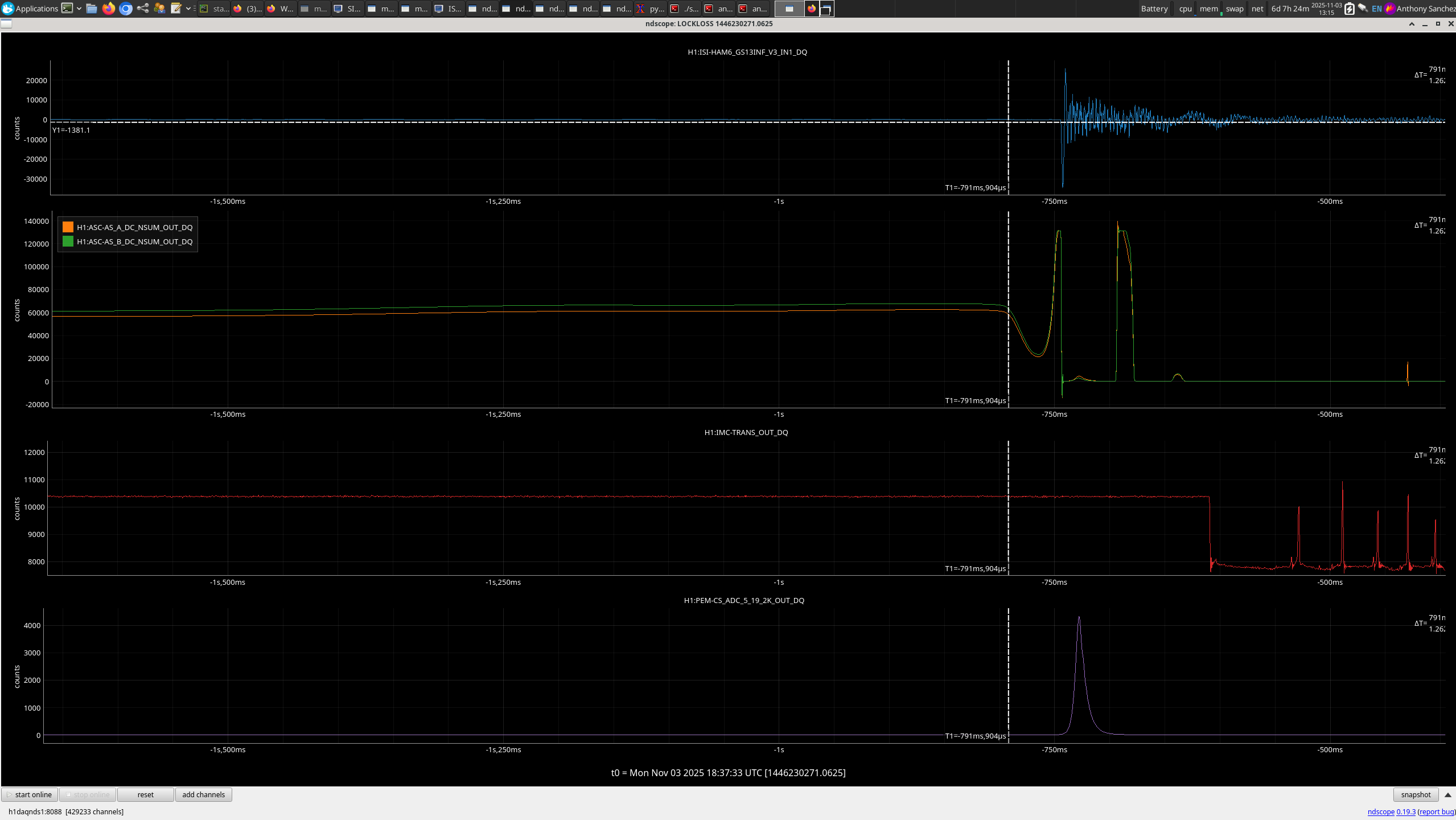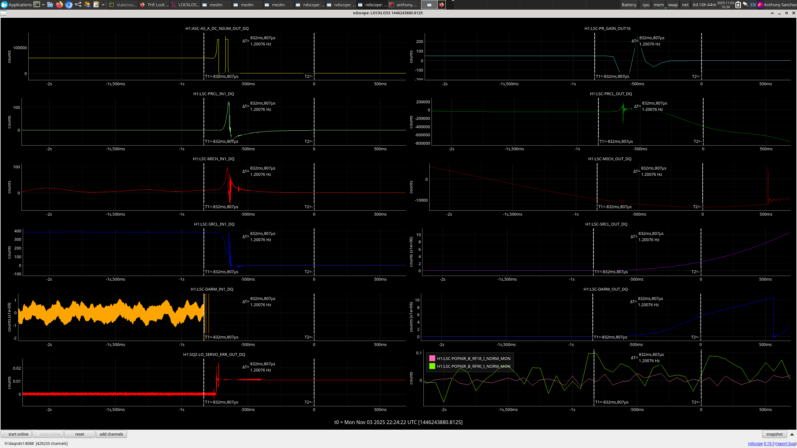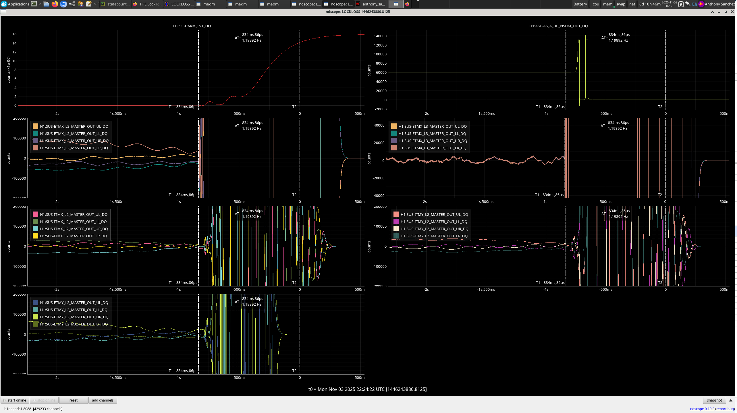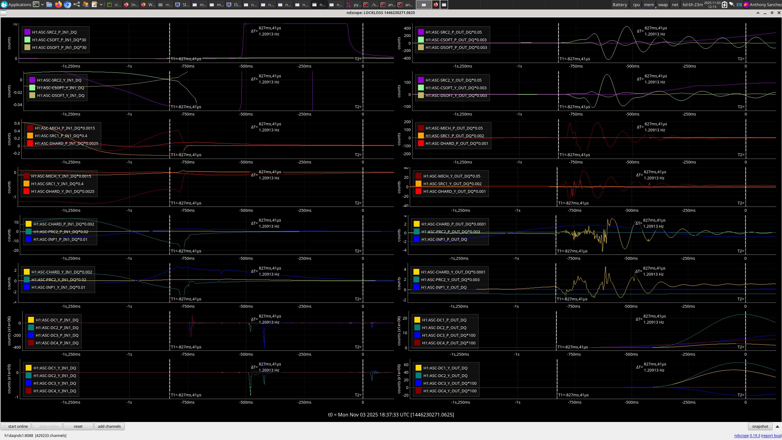 Once that had properly damped the oscillation and used the ASC Low gain button we were able to do some Observing.