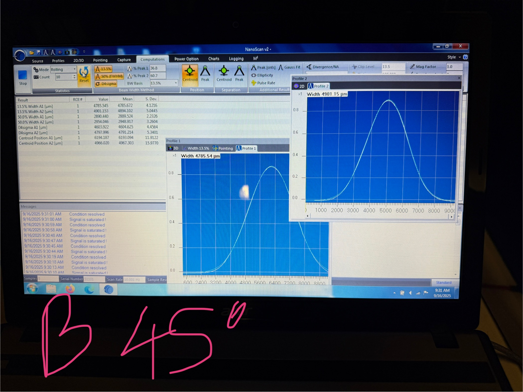 Location | D4 Sigma A1 Horizontal (um) | D4 Sigma A2 Vertical (um) | D4 Sigma A1 at 45deg (um) | D4 Sigma A2 at 45deg (um) |