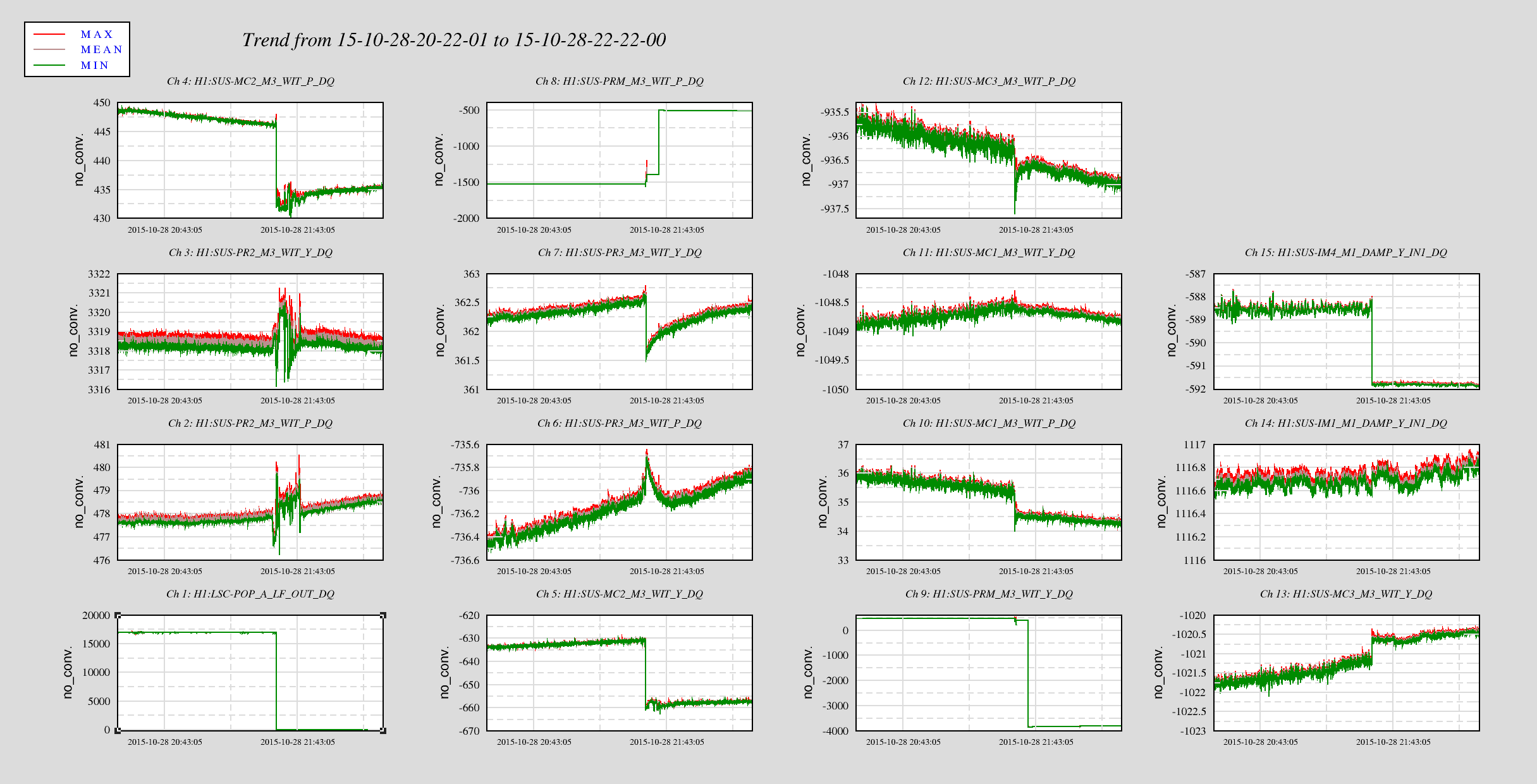 MC1 and MC3 see a change at lock loss, and then some motion at relocking the IMC, but are unchnged, which we knew since they're in HAM2.