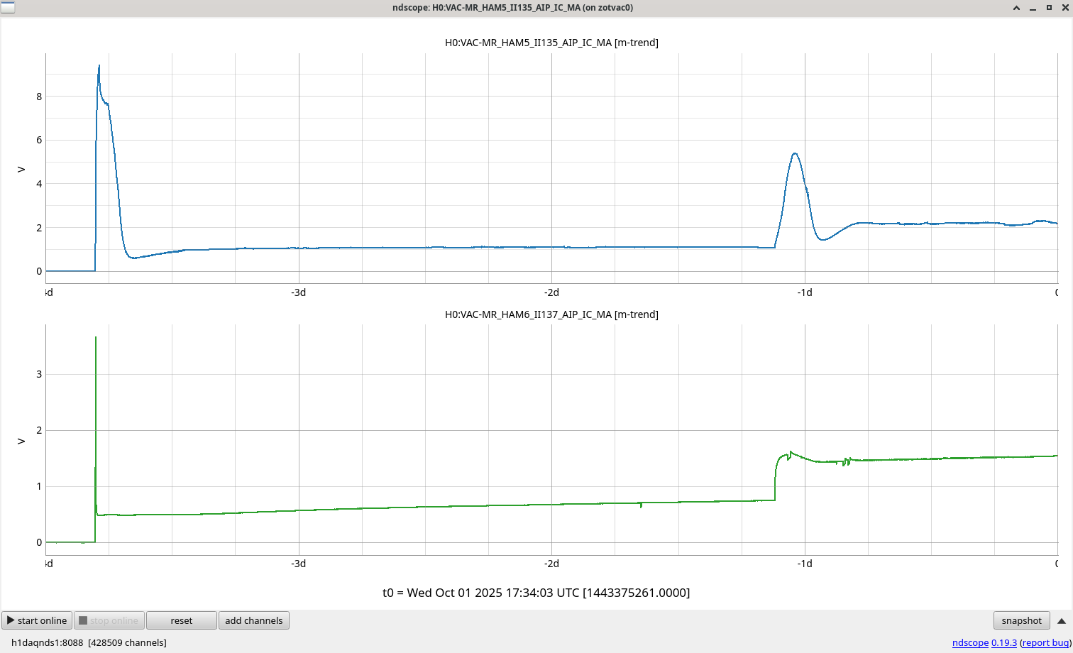 TJ powered ON the ion pumps over the weekend, that allowed for the pumps to reach very good vacuum pressure on the shared annuli system, then on Tuesday morning, Jordan isolated the annuli system for HAM5 and HAM6 from the mechanical pumps and turned off the aux carts.