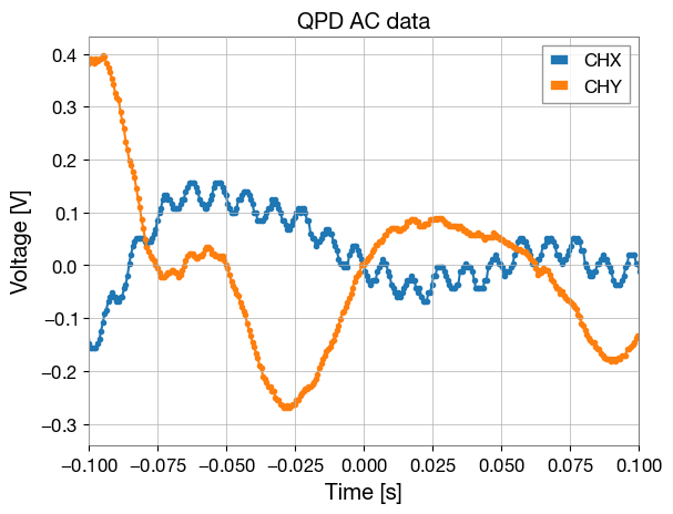The csv files I saved for AC, DC and QPD all had different time steps, but the same span meaning they were all different lengths. We might need to retake this data and mess around with the display and save settings to fix this - Keita investigated earlier today and it is possible to change the save resolution to be larger and also to reduce the number of samples the oscilloscope saves via the trigger menu.