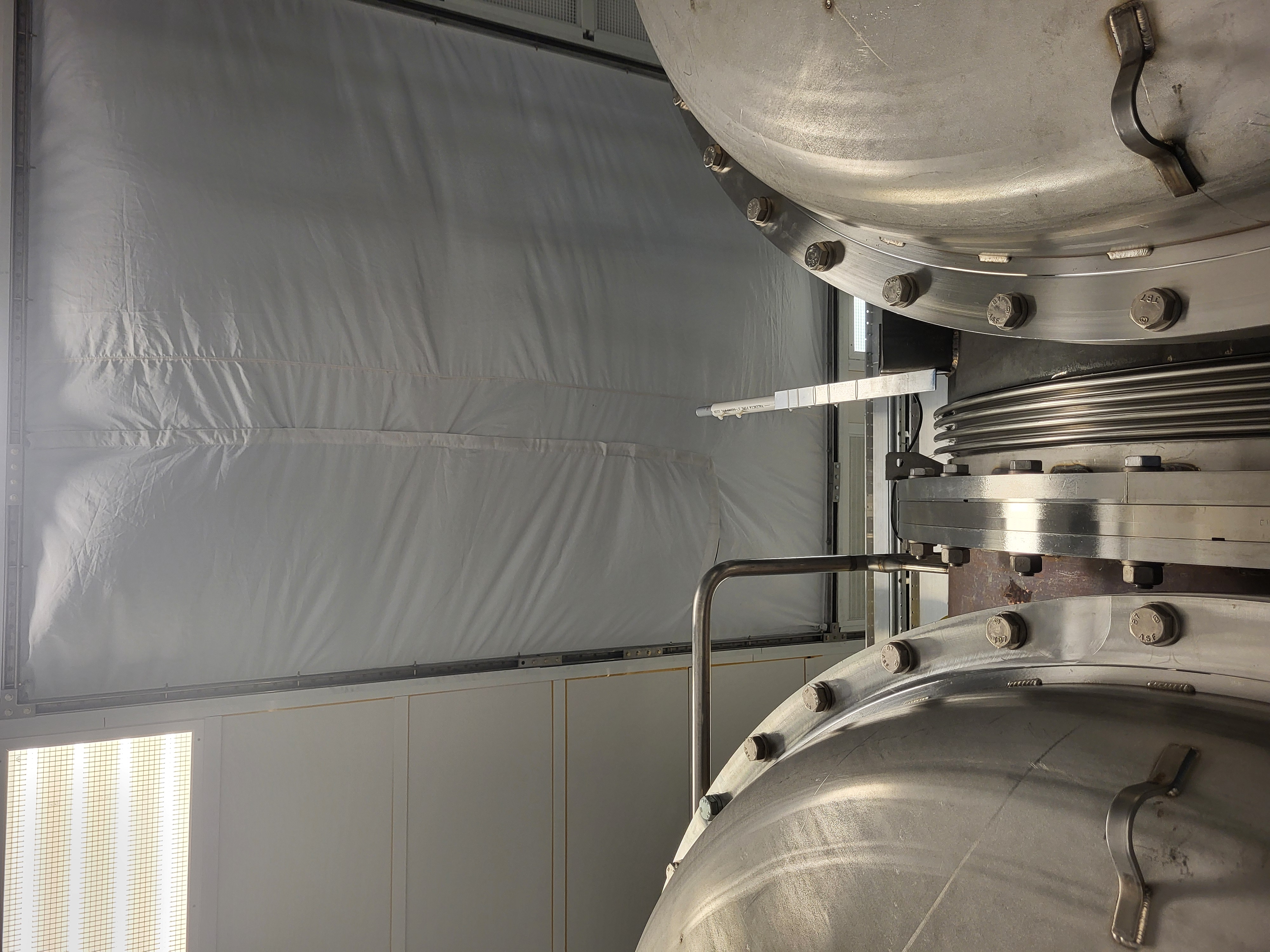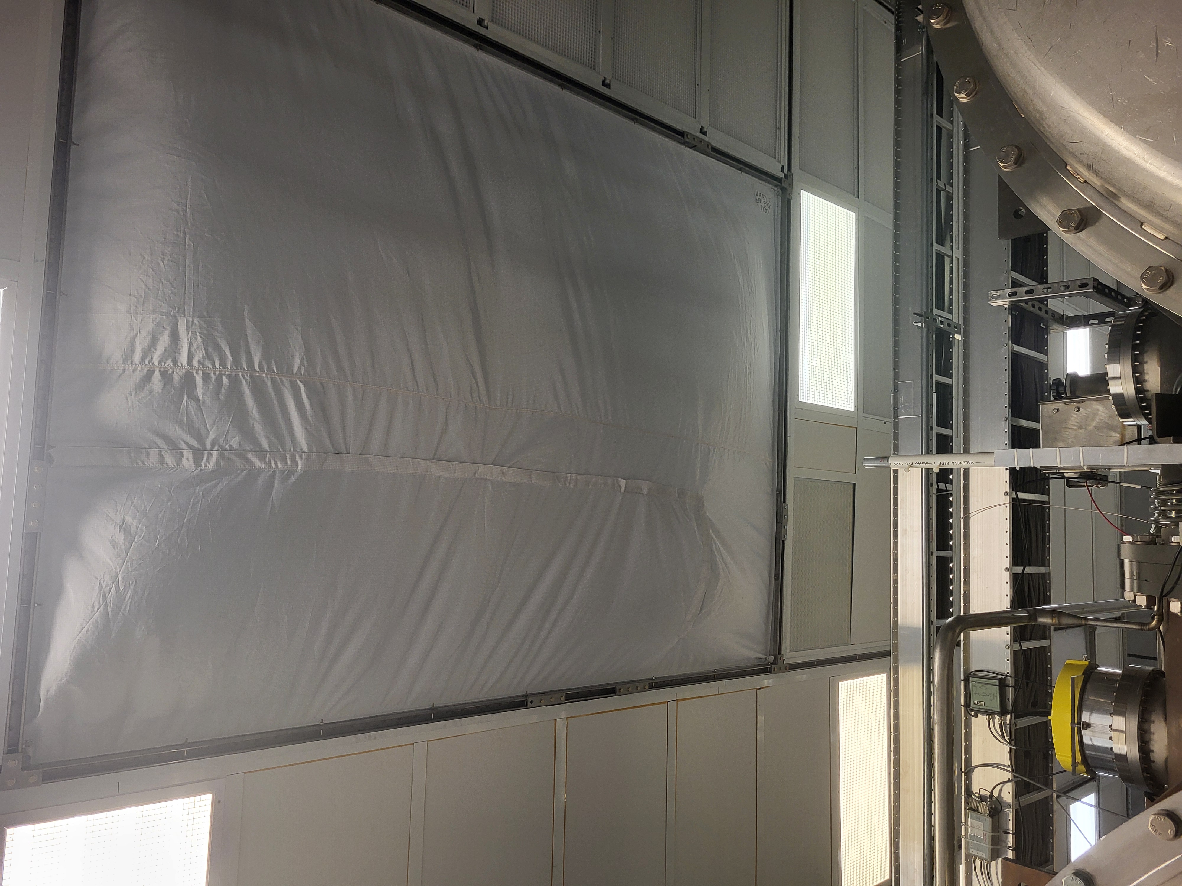 Betsy had a local company fabricate a C3 ceiling for our Mega Cleanroom. This ceiling has velcro opening to allow access for Septum removal. Opening extends to end of CR opening on the -X side and ends just short of the +X opening.