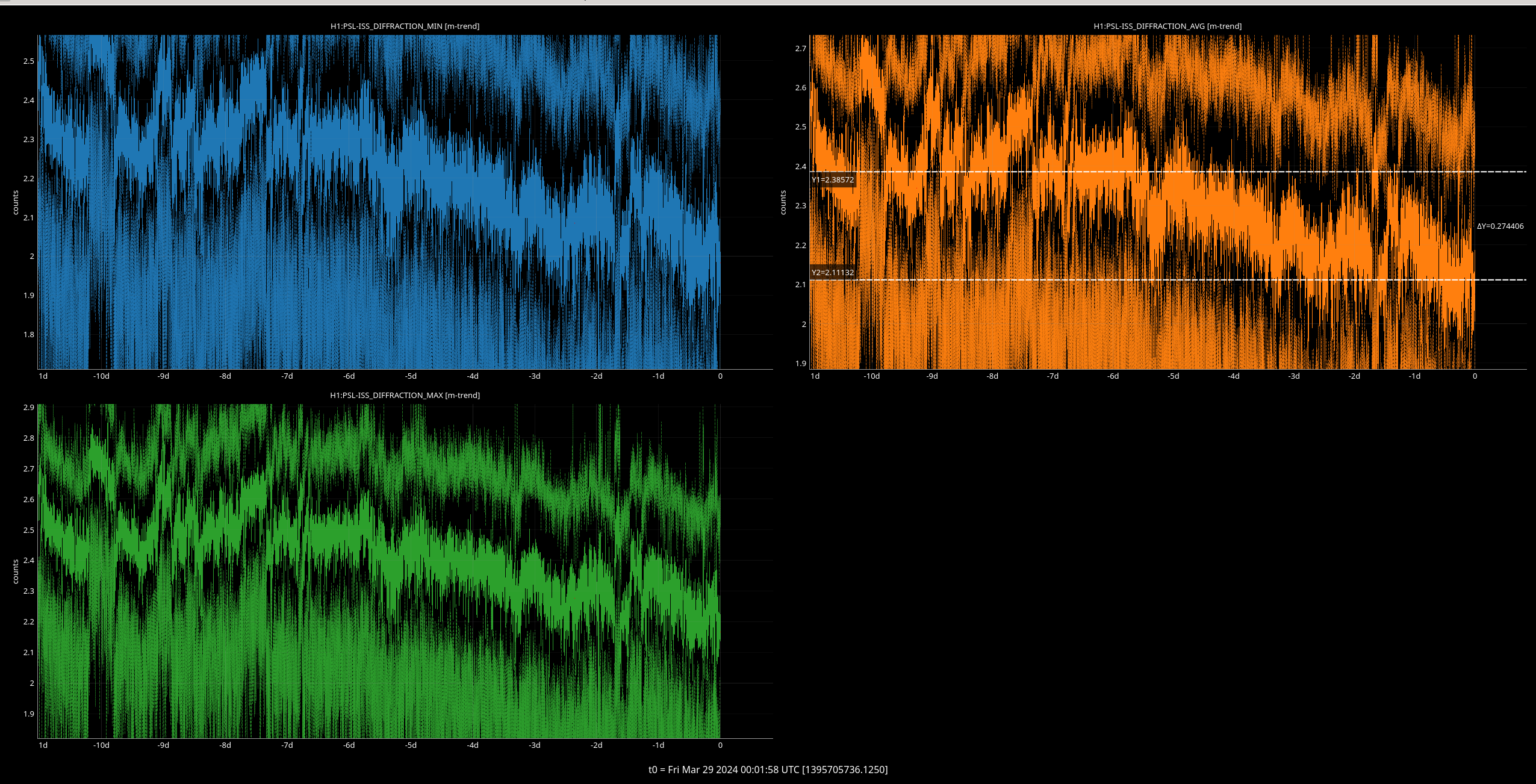 We are not sure why the PSL-ISS_SECONDLOOP_PDSUMOUTER chnages as we change the input pointing but we could be clipping somewhere between IM4 and ISS array.