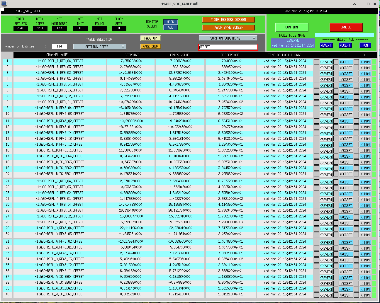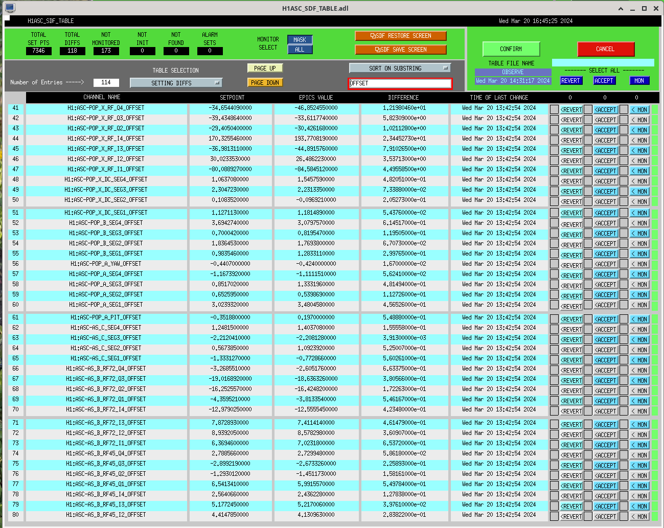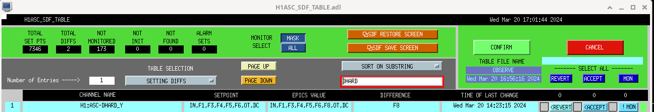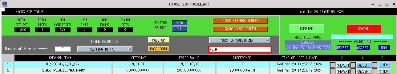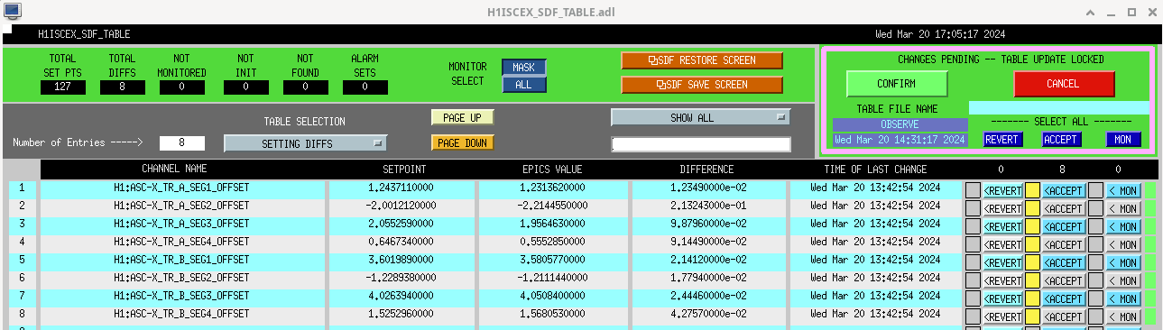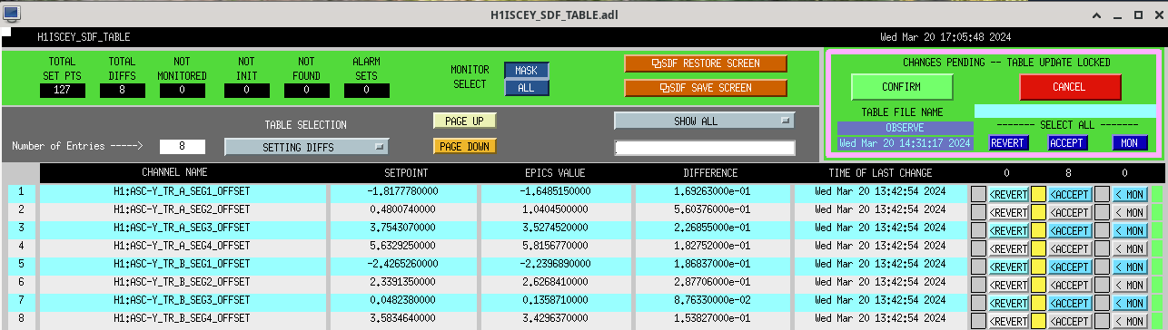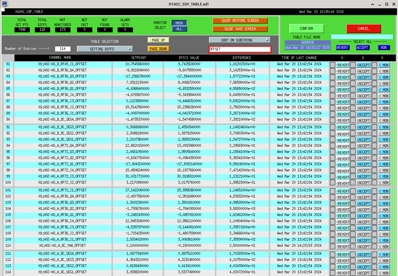 Accepted the new ASC_INMATRIX settings in sdf, see attached. Aslo accepted ASC_POS_Y's new minus sign and AS_A_RF42_YAW_OFFSET.