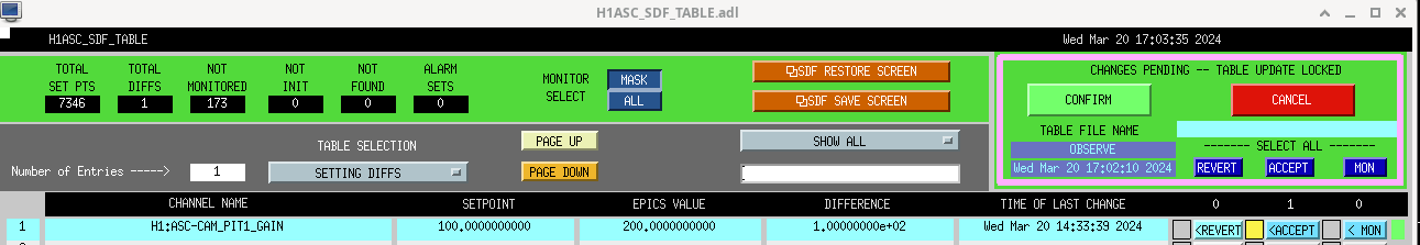 Noaki added a gain increase to the CAM1 PIT loop for faster convergence. It should be in the guardian, so I've accepted it in SDF.