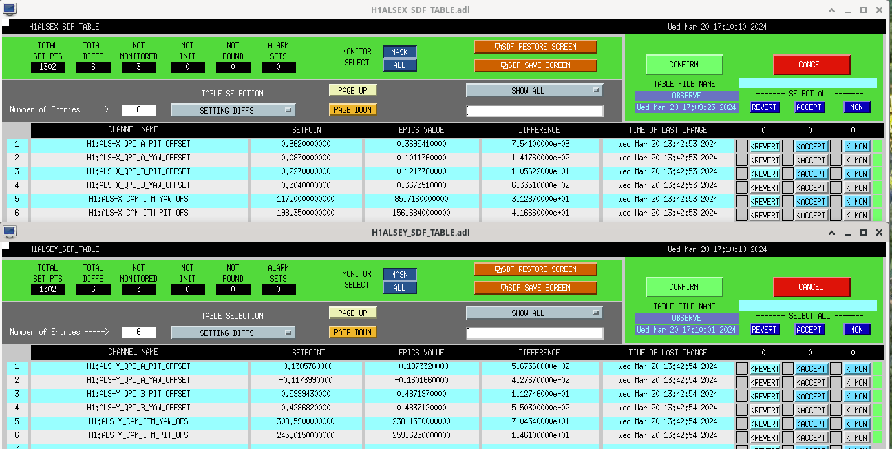 Jenne was pecking away at SDFs (separate alogs), Jennie/Evan did OMC (I took screenshot below), Louis helped with PCal.....Squeezer work is currently active, so will wait for that team to ACCEPT Squeezer!