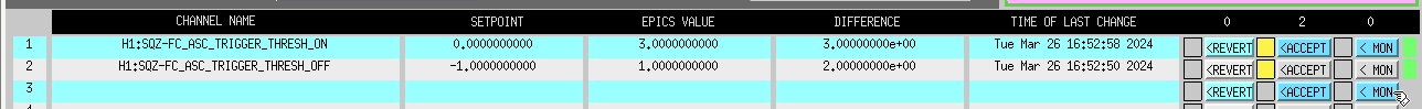 We changed "fcgs_trans_lock_threshold" to 120 today so FC wouldn't lock on higher order mode. The filter cavity was having trouble getting pass GR VCO lock so we have now reduced this power back to 80.