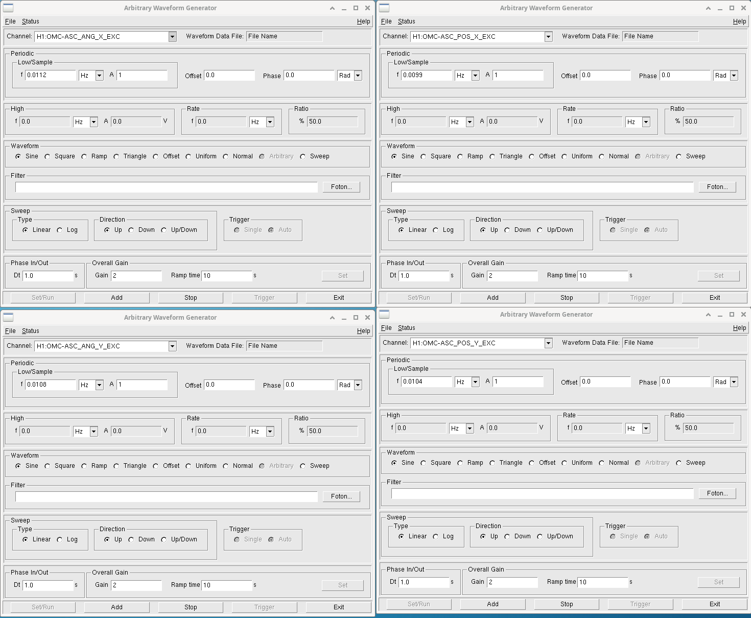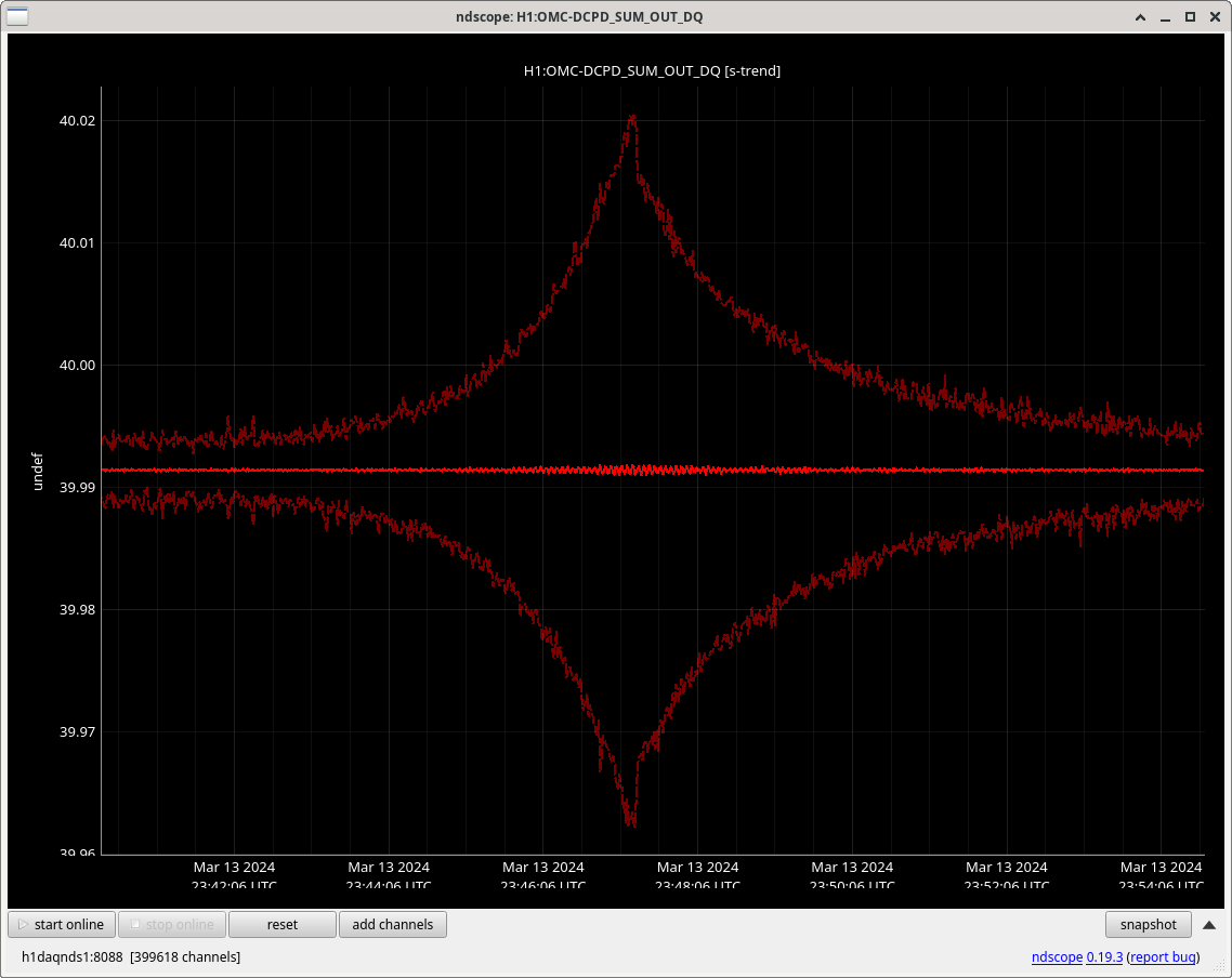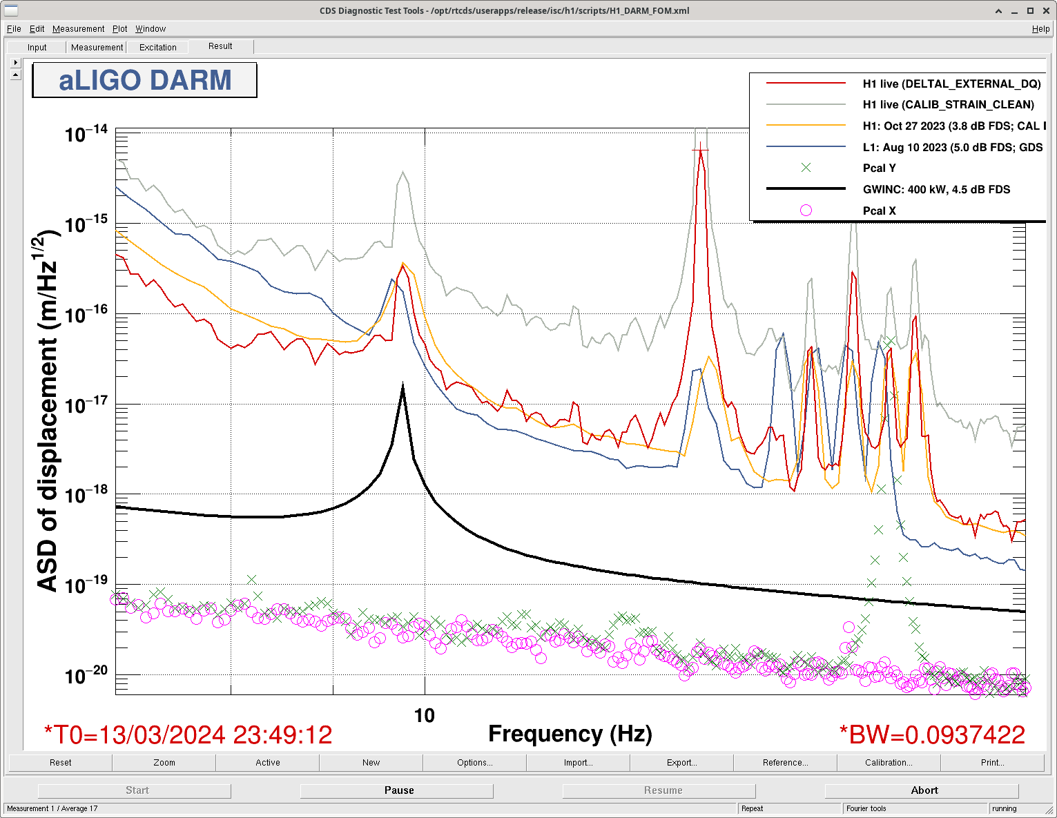 . In that directory are 1.) simulines injections scaled by the exact changes we made to the locking filters, 2.-4.) reductions by 10,100, and 1000 of the rescaled injections that I made out of an abundance of caution. The measurements we took this evening are:2024-03-15 01:44:02,574 | INFO | File written out to: /ligo/groups/cal/H1/measurements/DARMOLG_SS/DARMOLG_SS_20240315T012231Z.hdf5 2024-03-15 01:44:02,582 | INFO | File written out to: /ligo/groups/cal/H1/measurements/PCALY2DARM_SS/PCALY2DARM_SS_20240315T012231Z.hdf5 2024-03-15 01:44:02,591 | INFO | File written out to: /ligo/groups/cal/H1/measurements/SUSETMX_L1_SS/SUSETMX_L1_SS_20240315T012231Z.hdf5 2024-03-15 01:44:02,599 | INFO | File written out to: /ligo/groups/cal/H1/measurements/SUSETMX_L2_SS/SUSETMX_L2_SS_20240315T012231Z.hdf5 2024-03-15 01:44:02,605 | INFO | File written out to: /ligo/groups/cal/H1/measurements/SUSETMX_L3_SS/SUSETMX_L3_SS_20240315T012231Z.hdf5