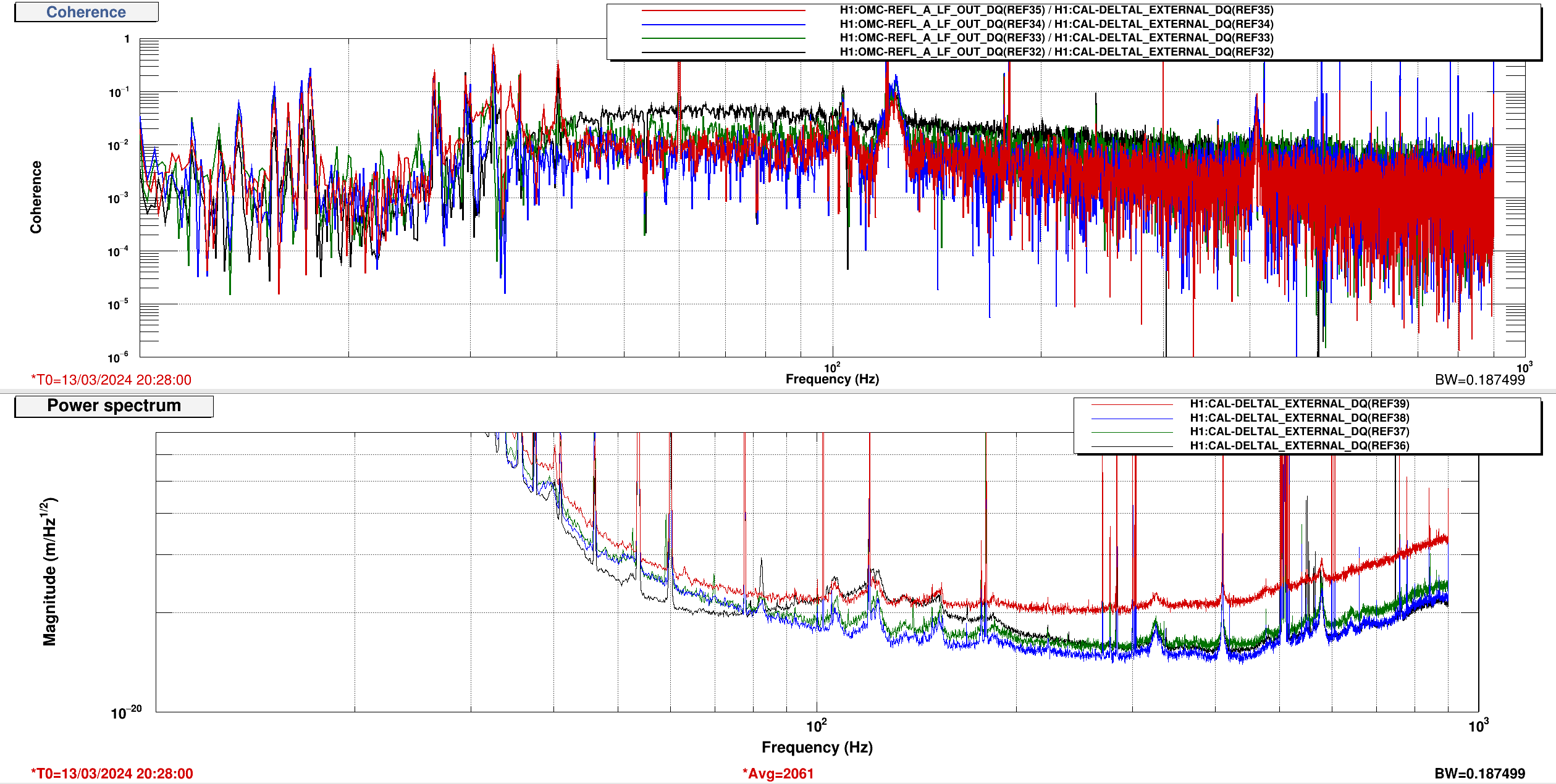 . In that directory are 1.) simulines injections scaled by the exact changes we made to the locking filters, 2.-4.) reductions by 10,100, and 1000 of the rescaled injections that I made out of an abundance of caution. The measurements we took this evening are:2024-03-15 01:44:02,574 | INFO | File written out to: /ligo/groups/cal/H1/measurements/DARMOLG_SS/DARMOLG_SS_20240315T012231Z.hdf5 2024-03-15 01:44:02,582 | INFO | File written out to: /ligo/groups/cal/H1/measurements/PCALY2DARM_SS/PCALY2DARM_SS_20240315T012231Z.hdf5 2024-03-15 01:44:02,591 | INFO | File written out to: /ligo/groups/cal/H1/measurements/SUSETMX_L1_SS/SUSETMX_L1_SS_20240315T012231Z.hdf5 2024-03-15 01:44:02,599 | INFO | File written out to: /ligo/groups/cal/H1/measurements/SUSETMX_L2_SS/SUSETMX_L2_SS_20240315T012231Z.hdf5 2024-03-15 01:44:02,605 | INFO | File written out to: /ligo/groups/cal/H1/measurements/SUSETMX_L3_SS/SUSETMX_L3_SS_20240315T012231Z.hdf5