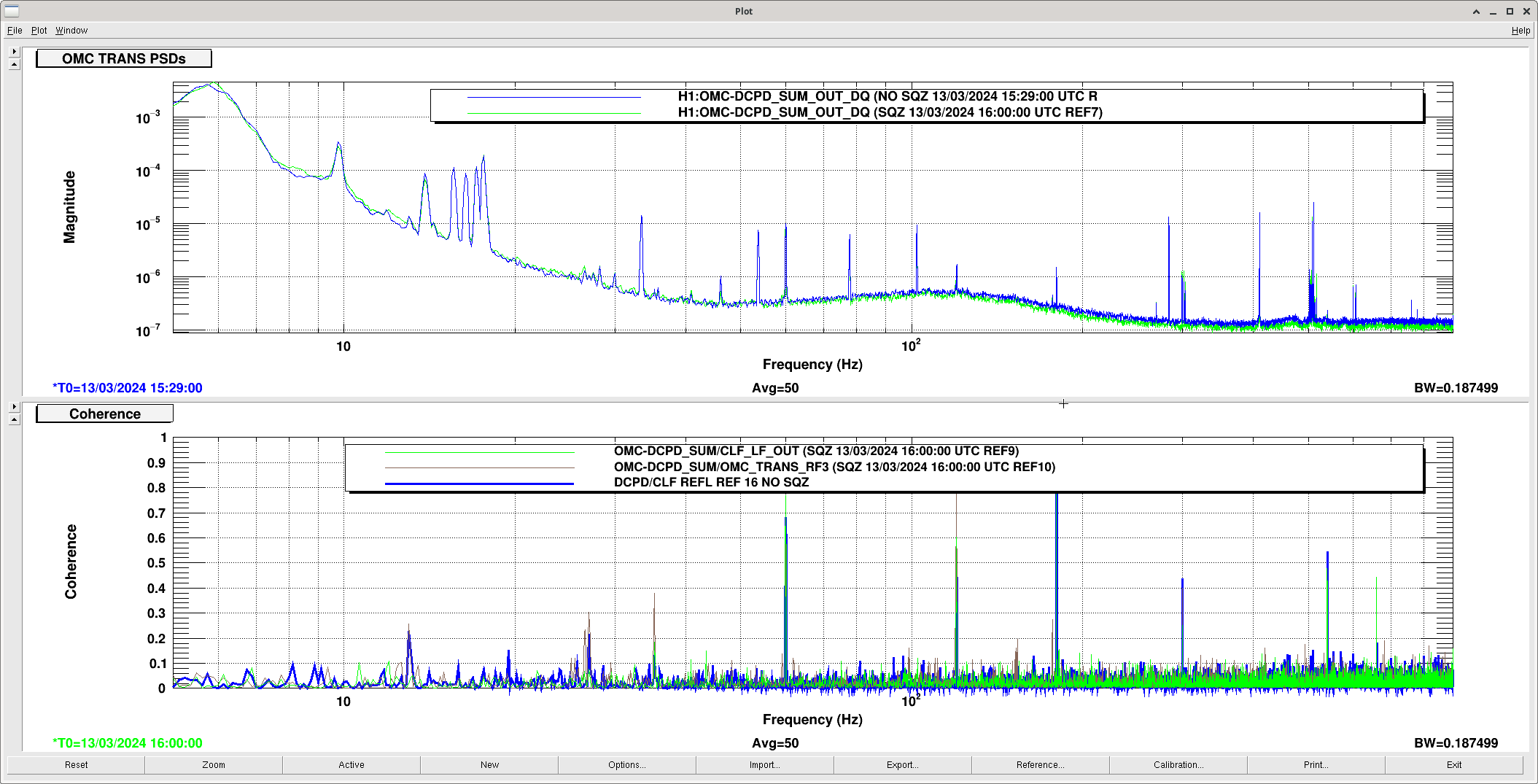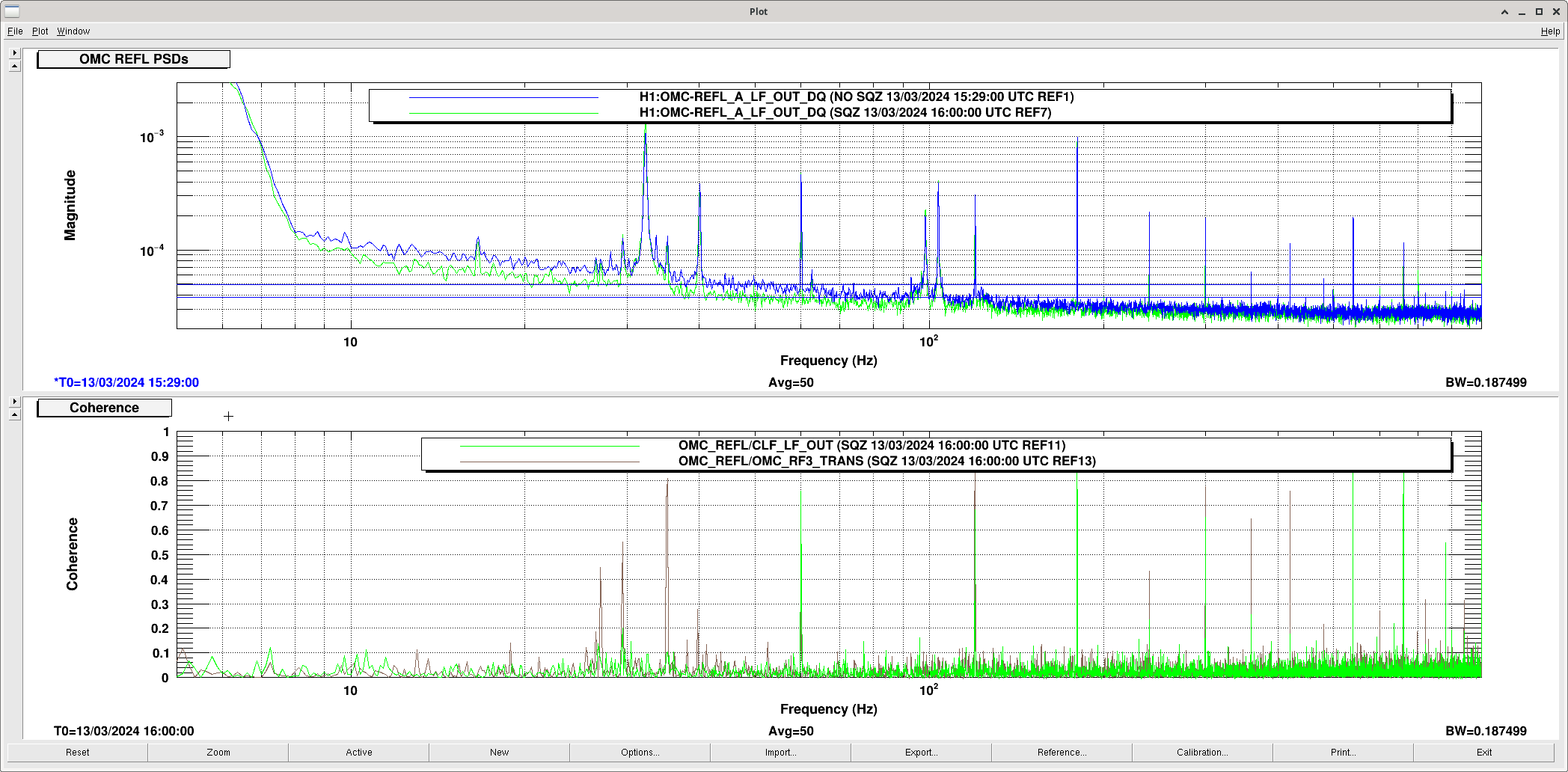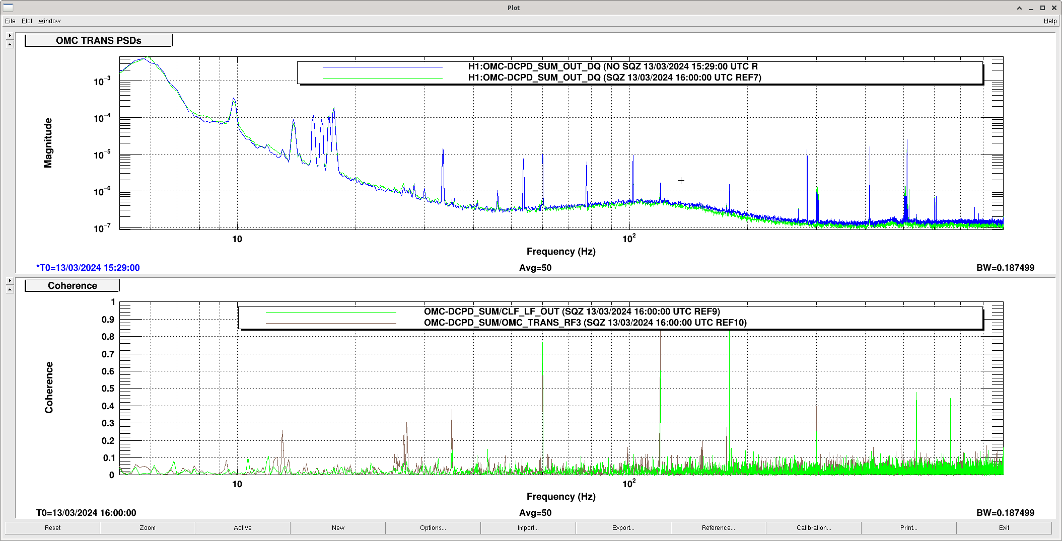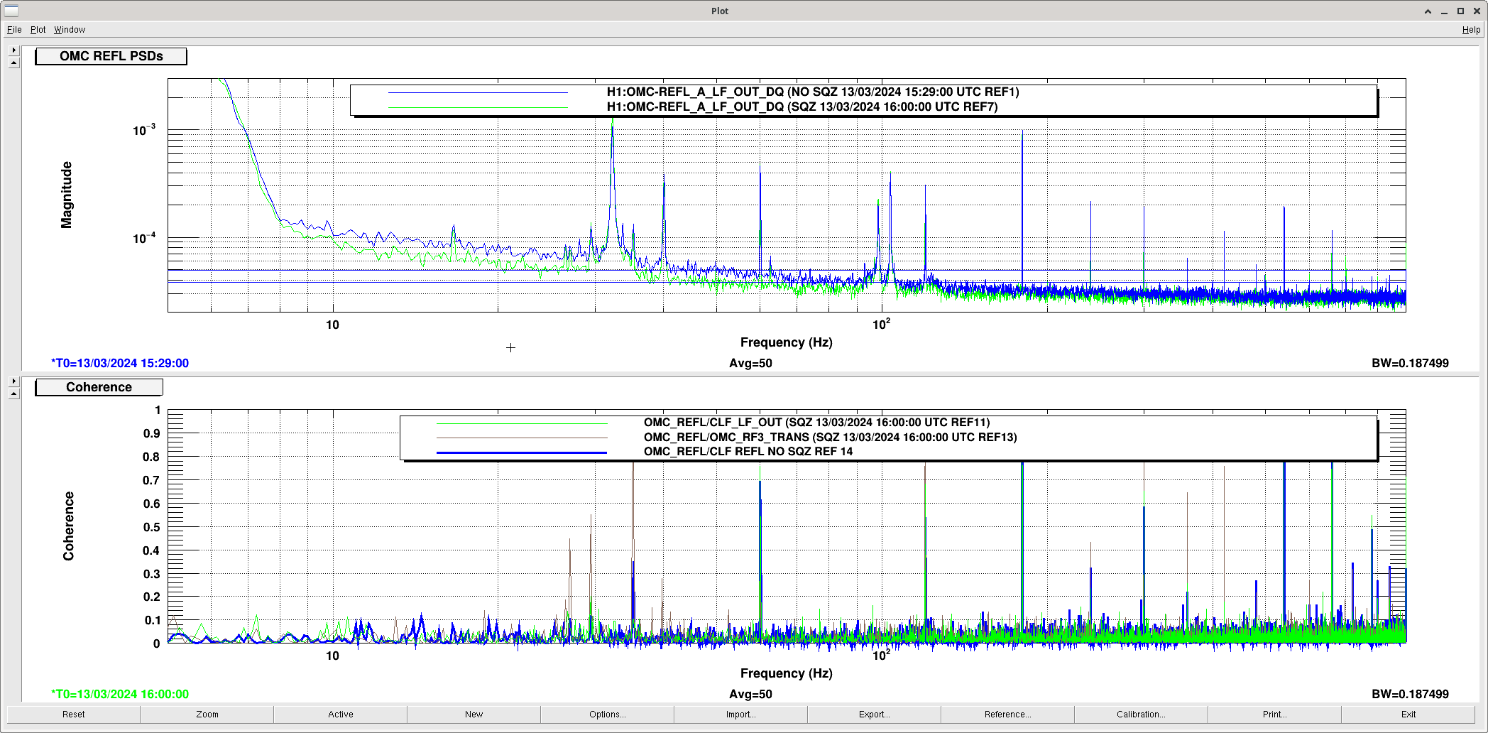 (Blank line is the reference of one of O4a - Dec 20, 2023 + No SQZ, cold OM2)