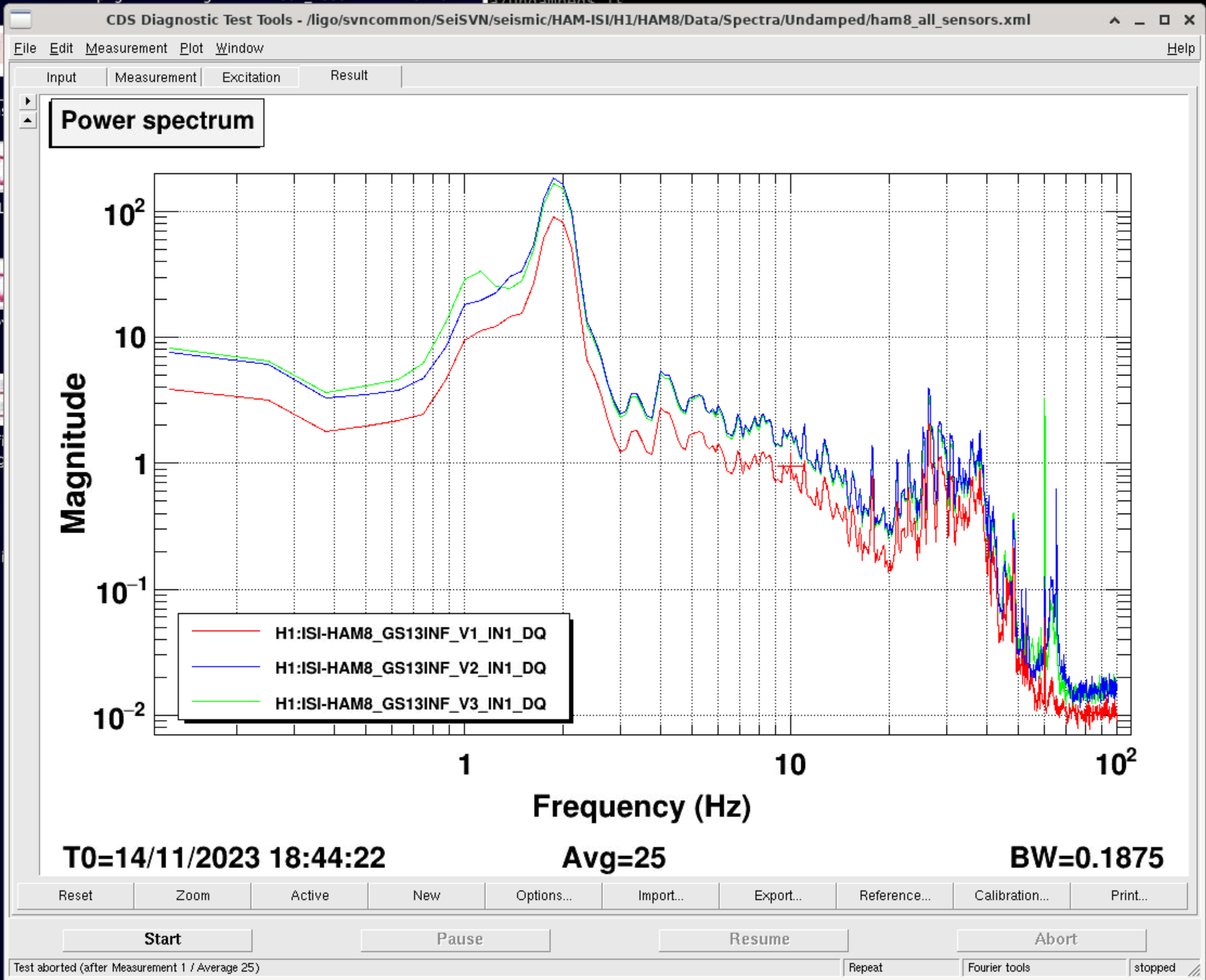4- Turning off the excitation, v1 asd is still matching the other 2 vertical gs13 (fig3)