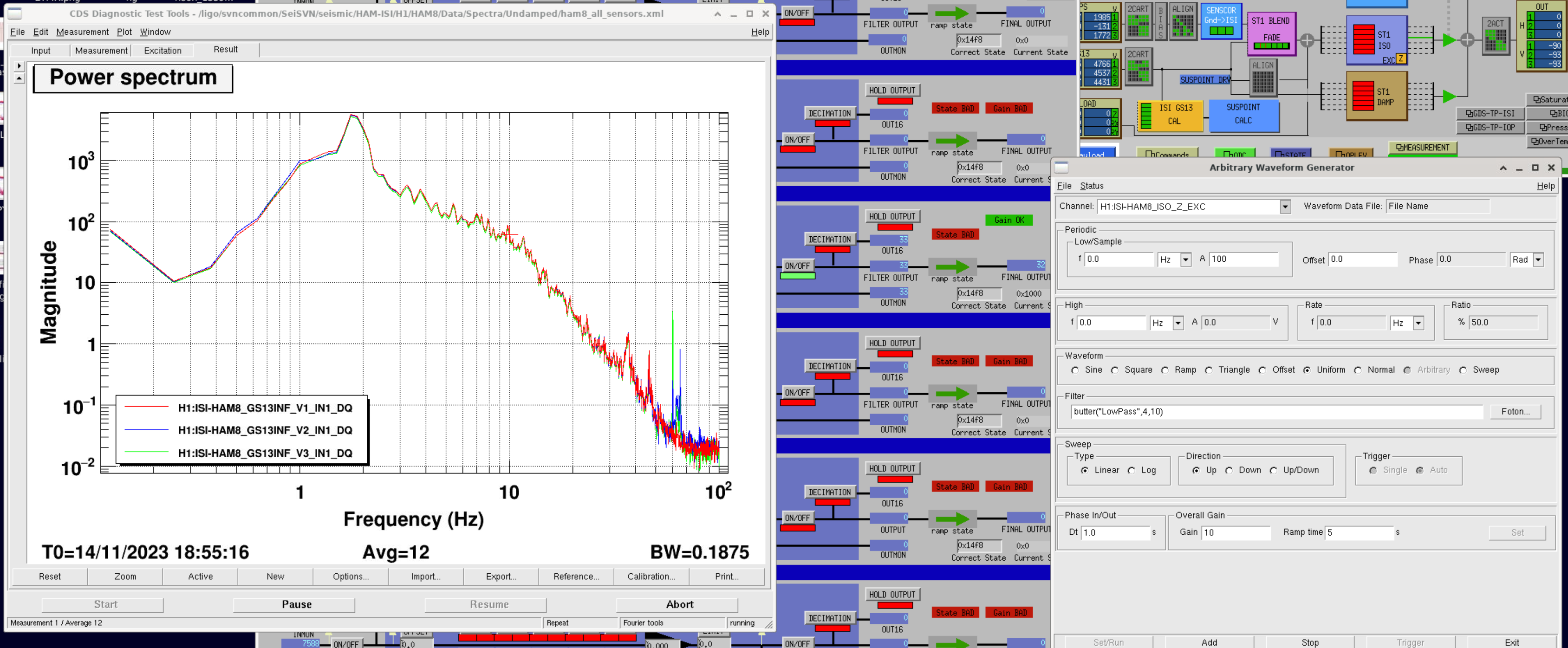 I spent some time this morning on the HAM8-GS13 v1 issue reported here by Jim, causing a 0.6Hz table oscillation. While working on it, the GS13 (or something along the chain) decided to fix itself. The problem has not reappeared -yet- since then.