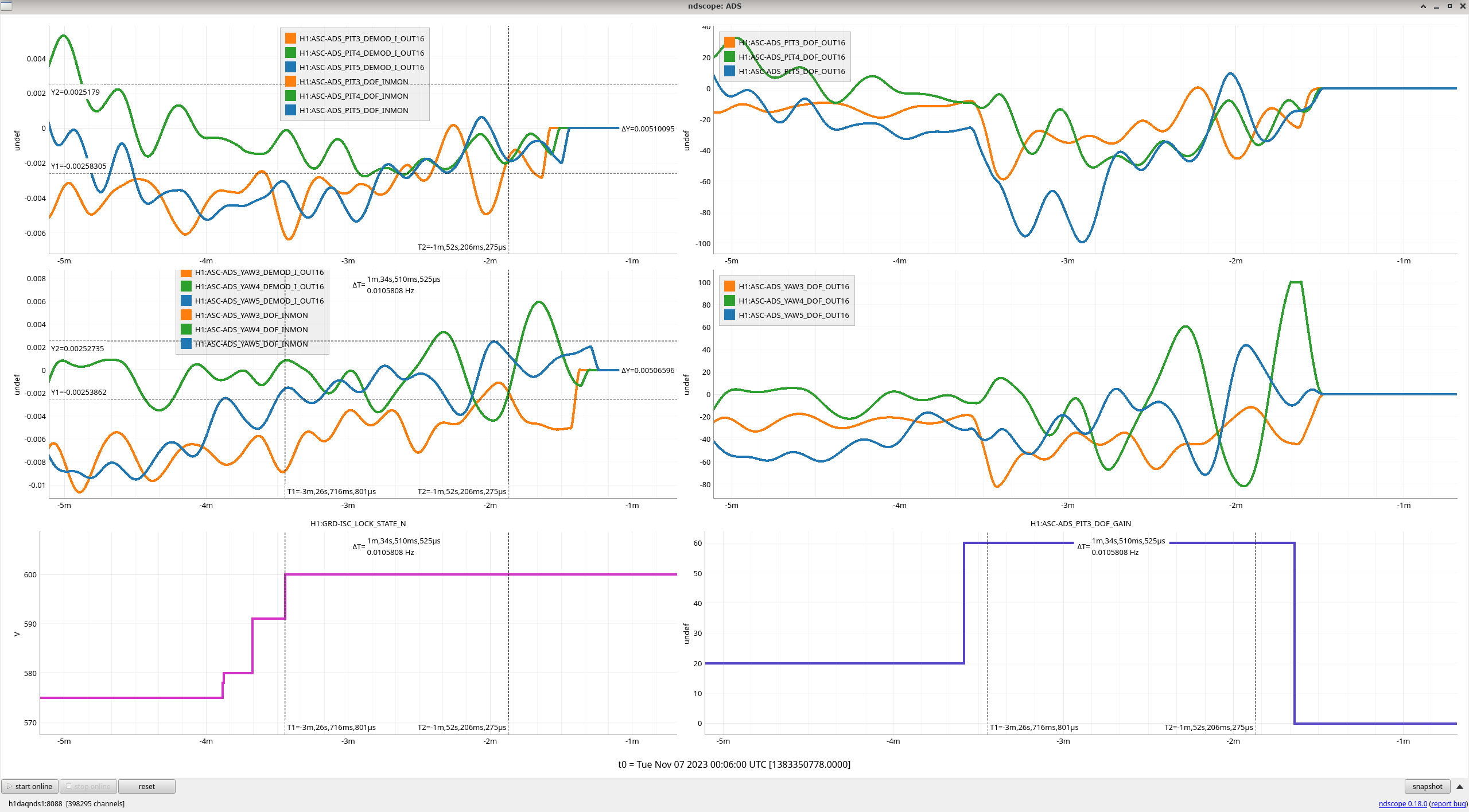 However, note that the DC value for MAX and MIN during the time OMC was kept on resonance were about 48k and 47k, respectively. The fact that MIN went to negative 80k and MAX went to positive 120k means that the transient response was huge.