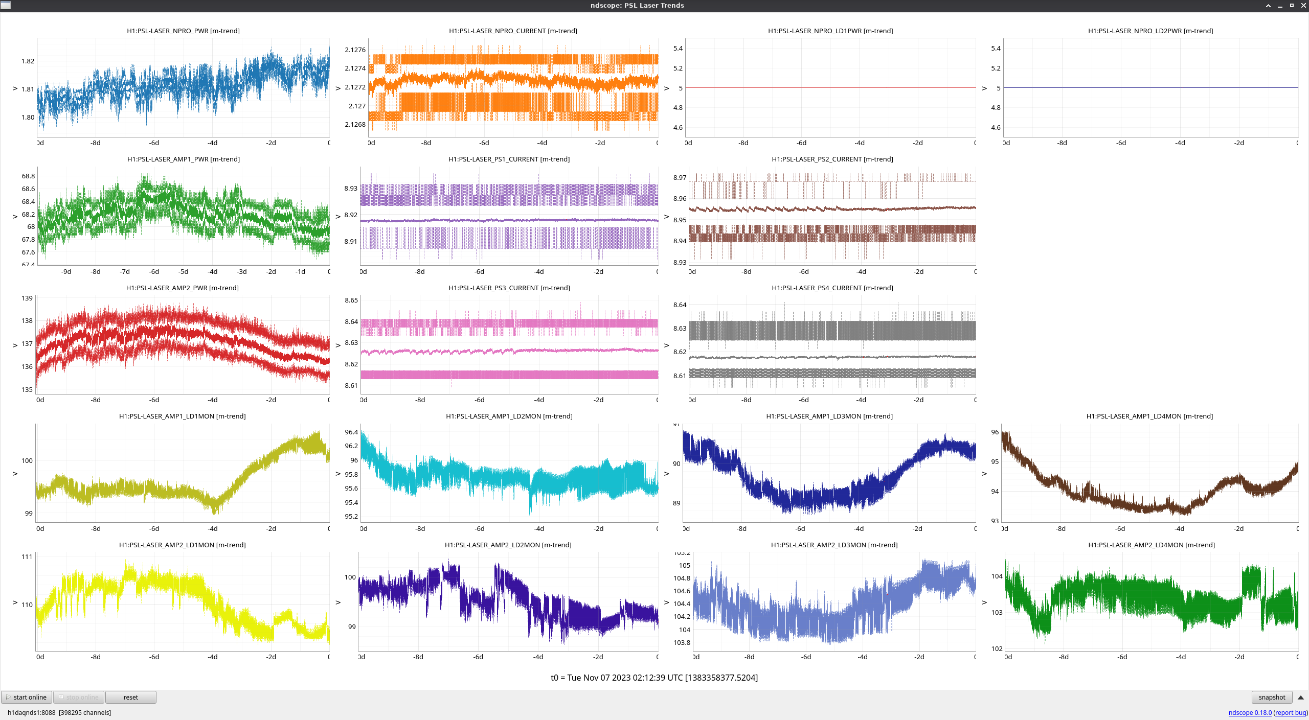 The output power for the NPRO has been slowly trending upward, but the output for both amps have been trending down.