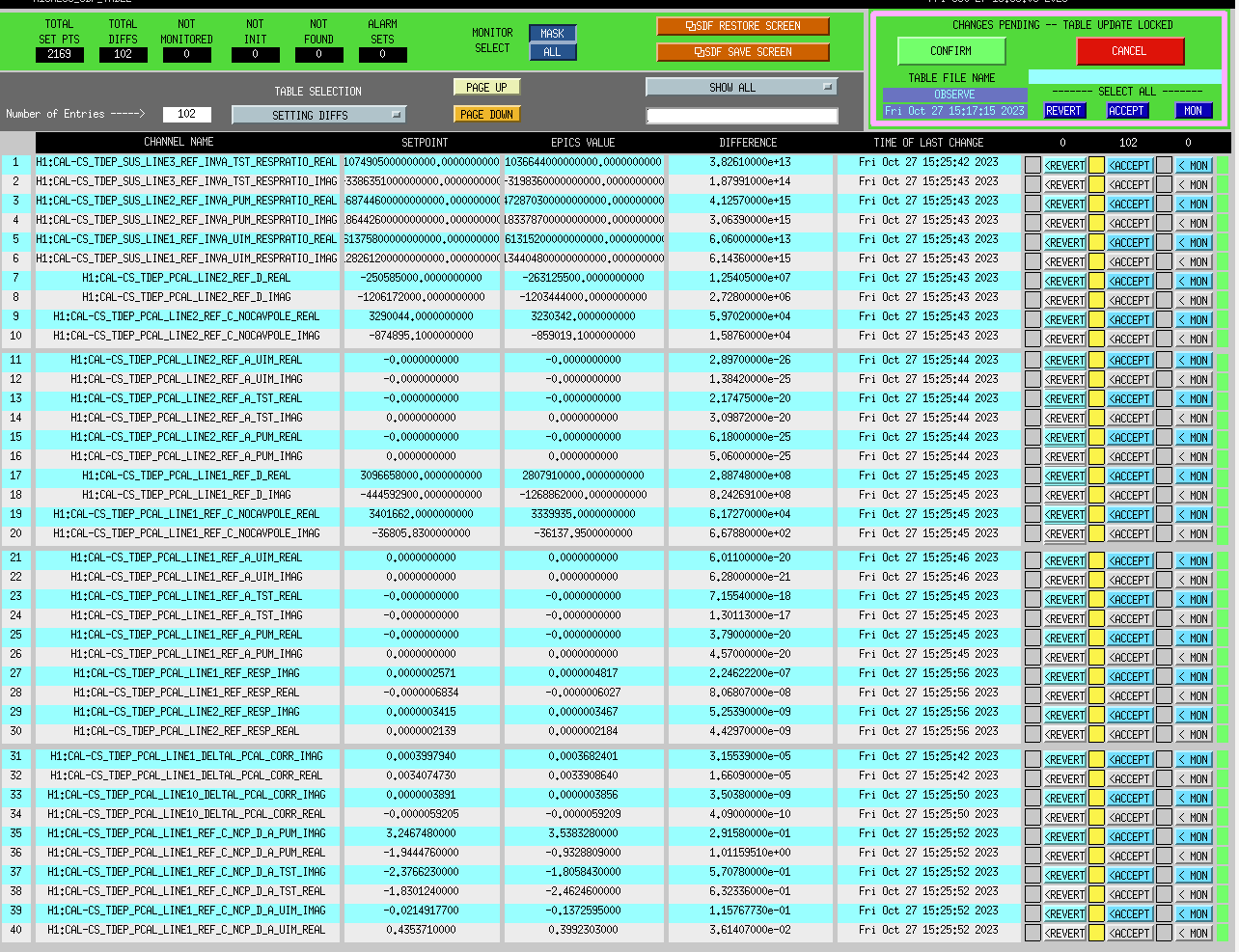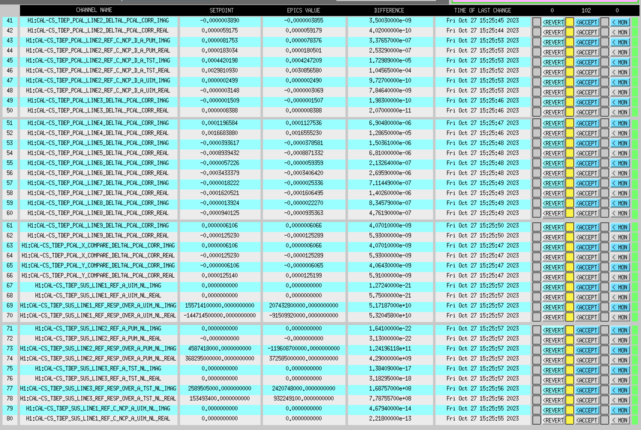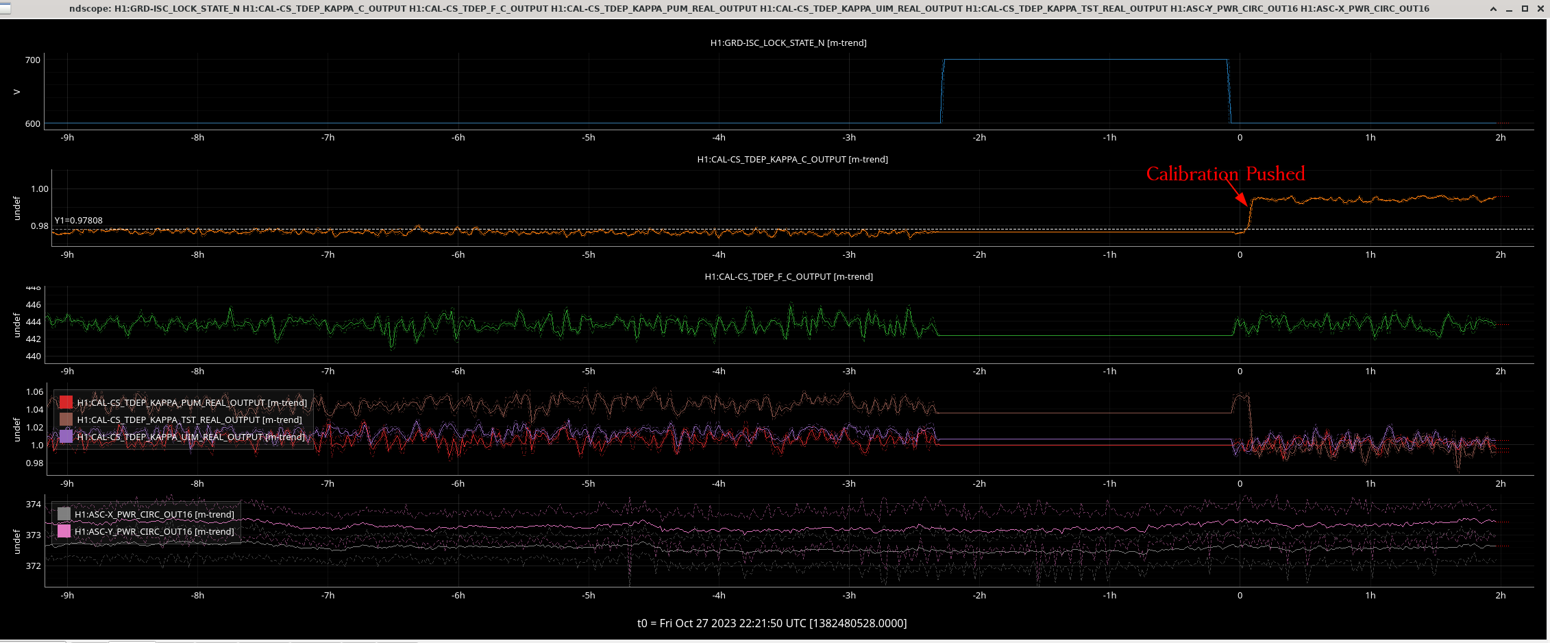 The 20231027T203619Z report was used to export a new calibration to the front end in the control room. The updates to the CALCS foton filters can be seen here and the same can be found for the EPICS records that used to calculate TDCFs in SDF screenshots attached to this log entry (page1, page2, page3).
