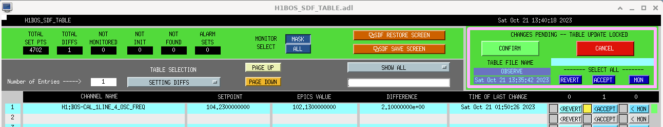 H1's been locked 3hrs and got the rundown of what Ryan needed to do with the Squeezer with Sheila/Naoki's help earlier. Useism is a bit lower than last night and winds are low.