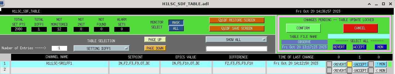 | 21:12 | ISC | Gabriele | REMOTE | N | SRCL FF retune | 21:20 |