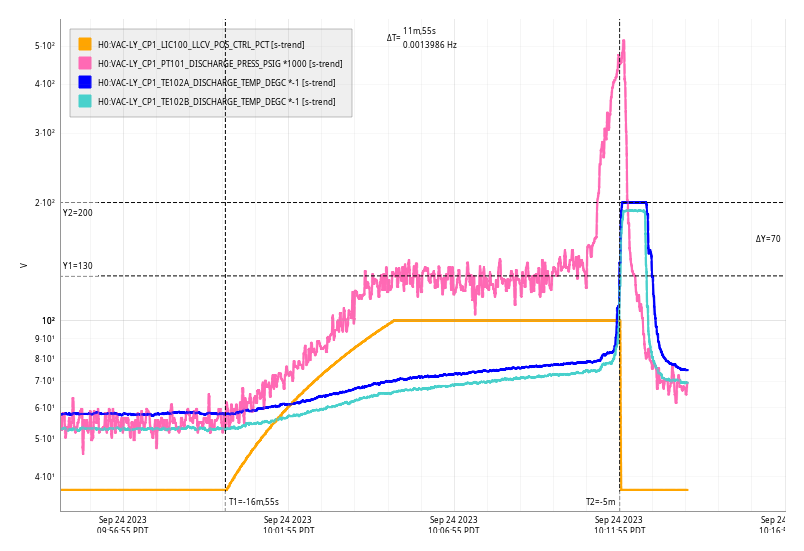 The feature in the SEI/BLRMS channel has appeared from time to time although not with the frequency and regularity seen now. It seems to have started around 23:00 UTC on Sep 21, but persisted through Sep 22 and 23. It's still present today (Sep 24), though its cadence has seemingly changed (figure 7).