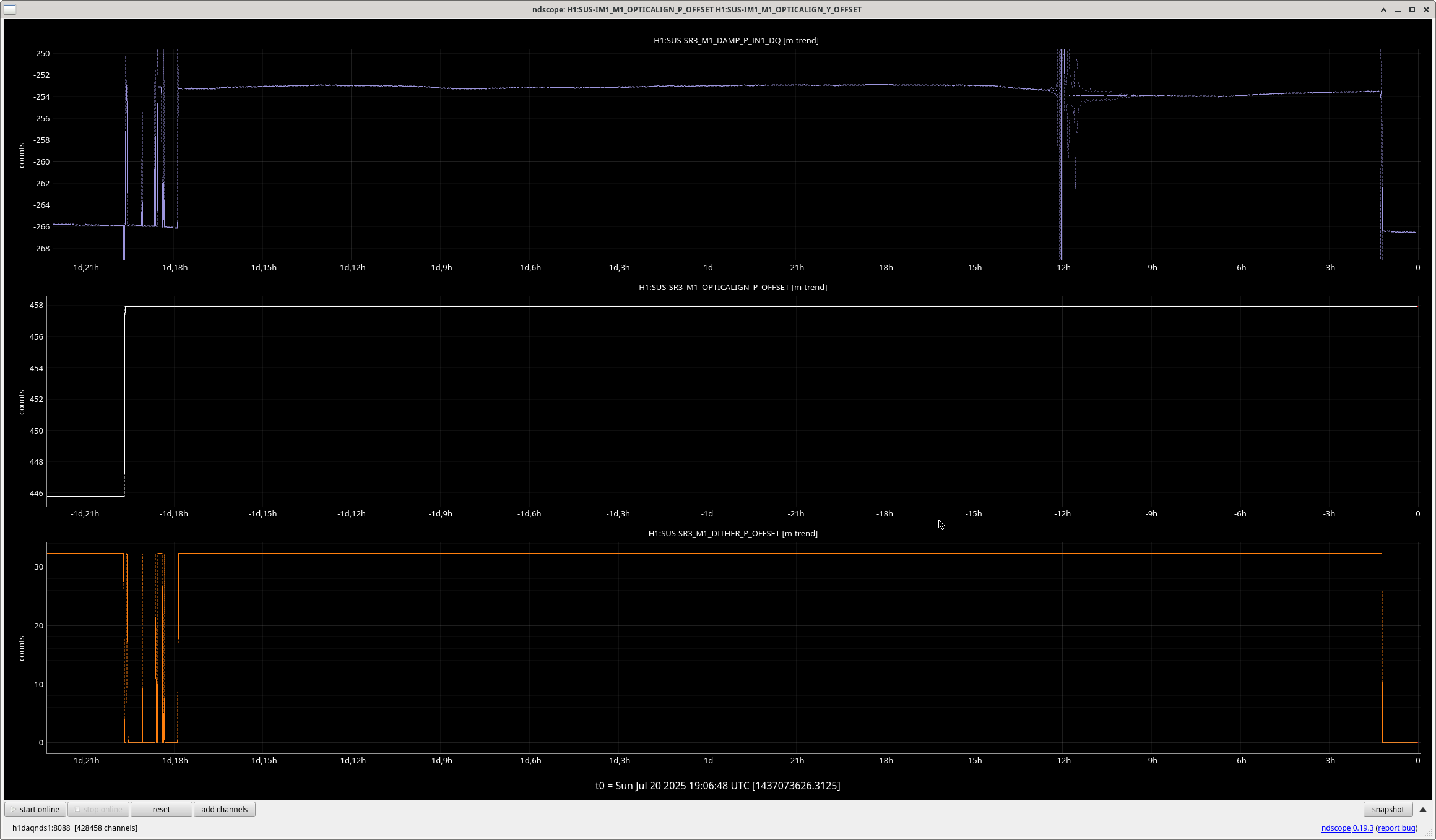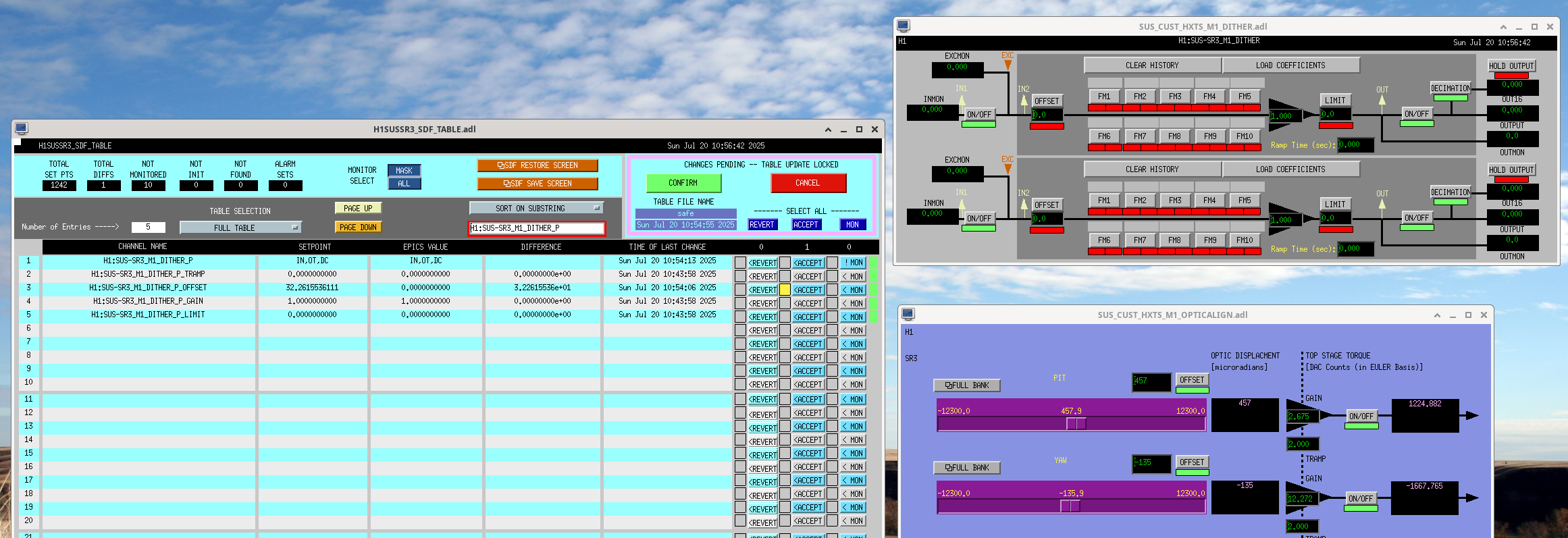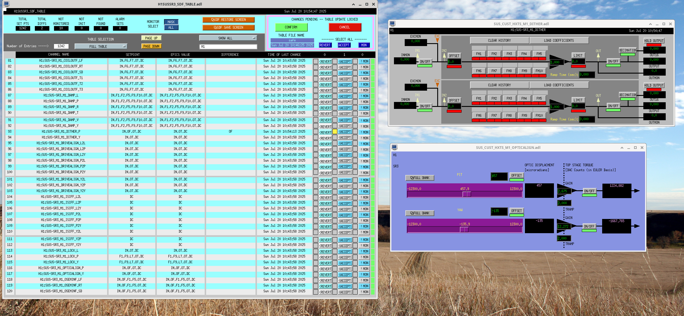 Both updates are screenshot-ed separately! Ha. The new SR3 OPTICALIGN_P_OFFSET was already at its new offset (of 457.9...which used to be 445.8) since Friday (and aligned). So now that the SR3 pointing changed with the Dither Offset going to zero, I ran a new alignment.