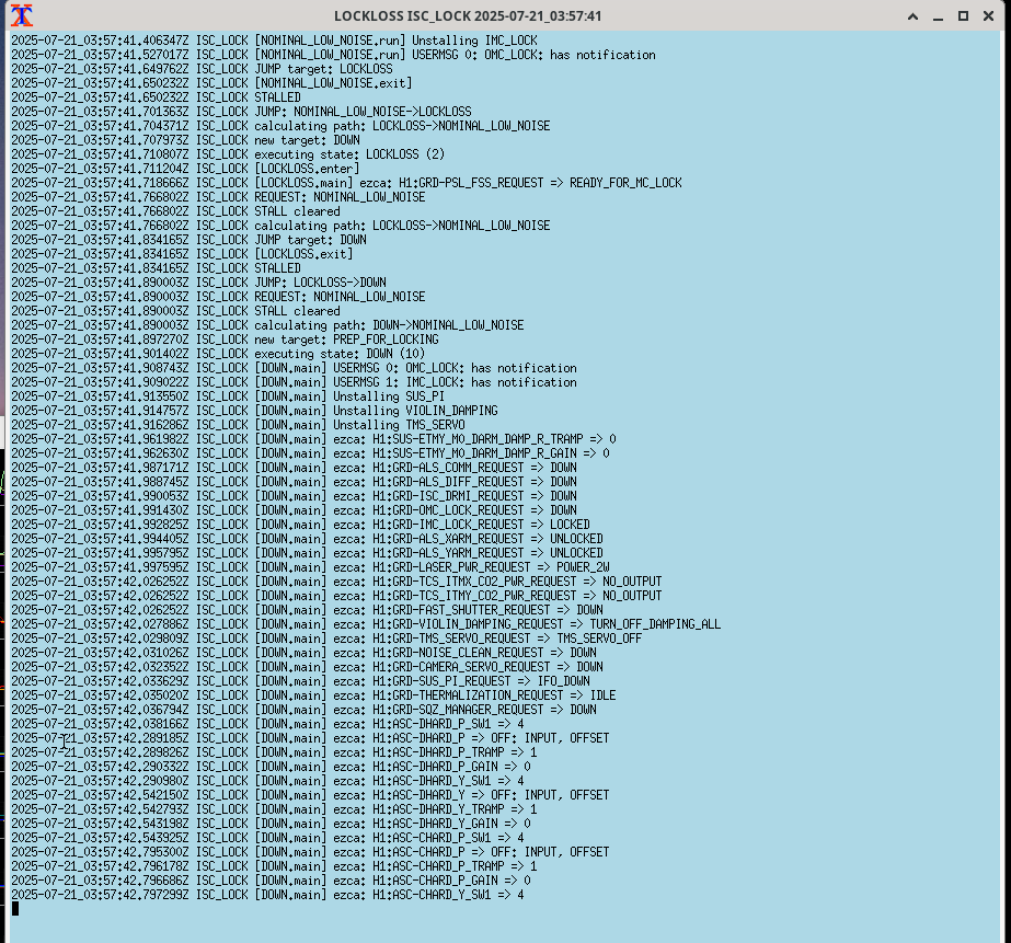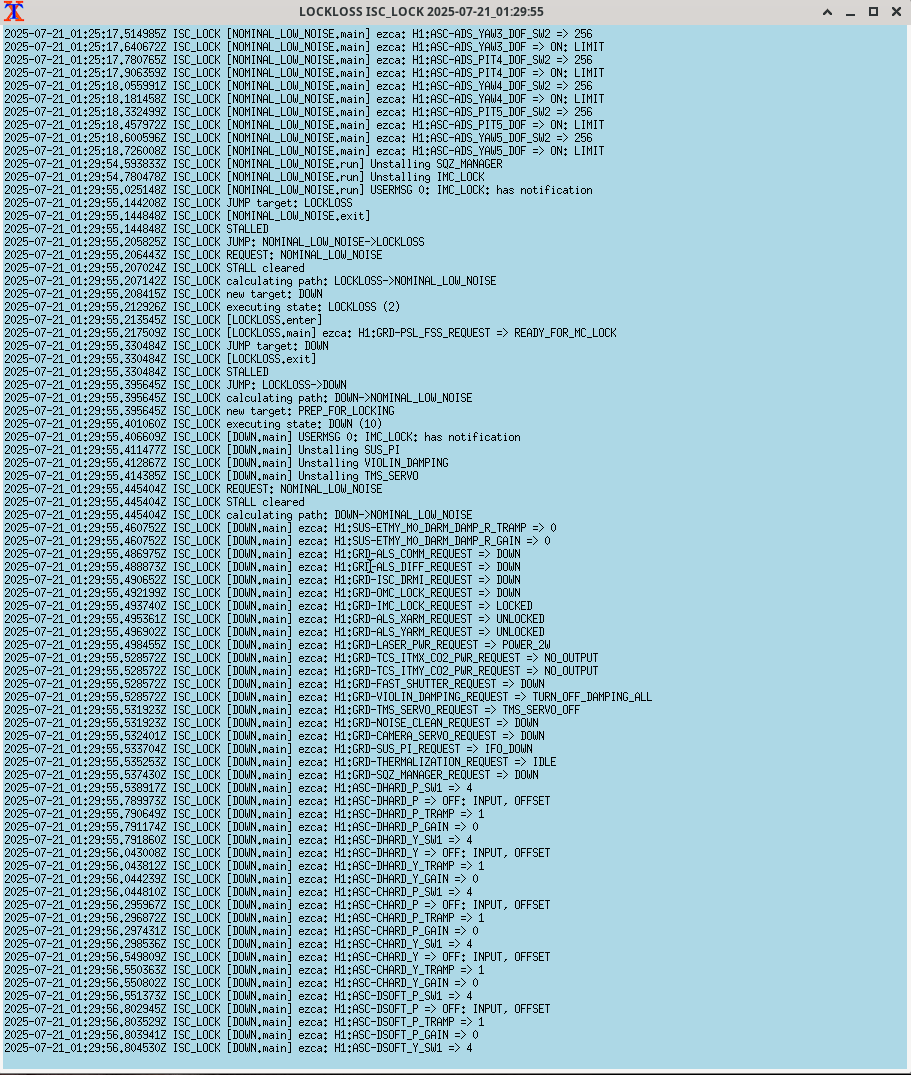 Relocking now, currently at LOW_NOISE_COIL_DRIVERS we should be locked by soon .