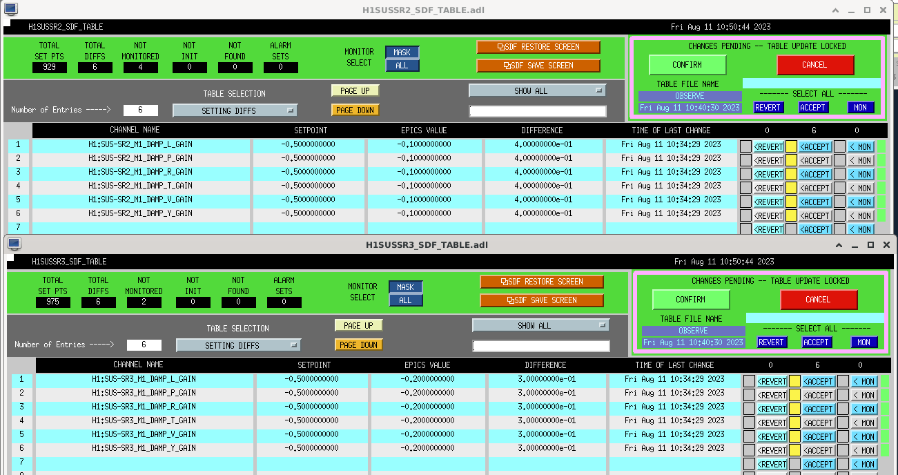 SR2 and SR3 damping gains changes that Elenna made have been accepted