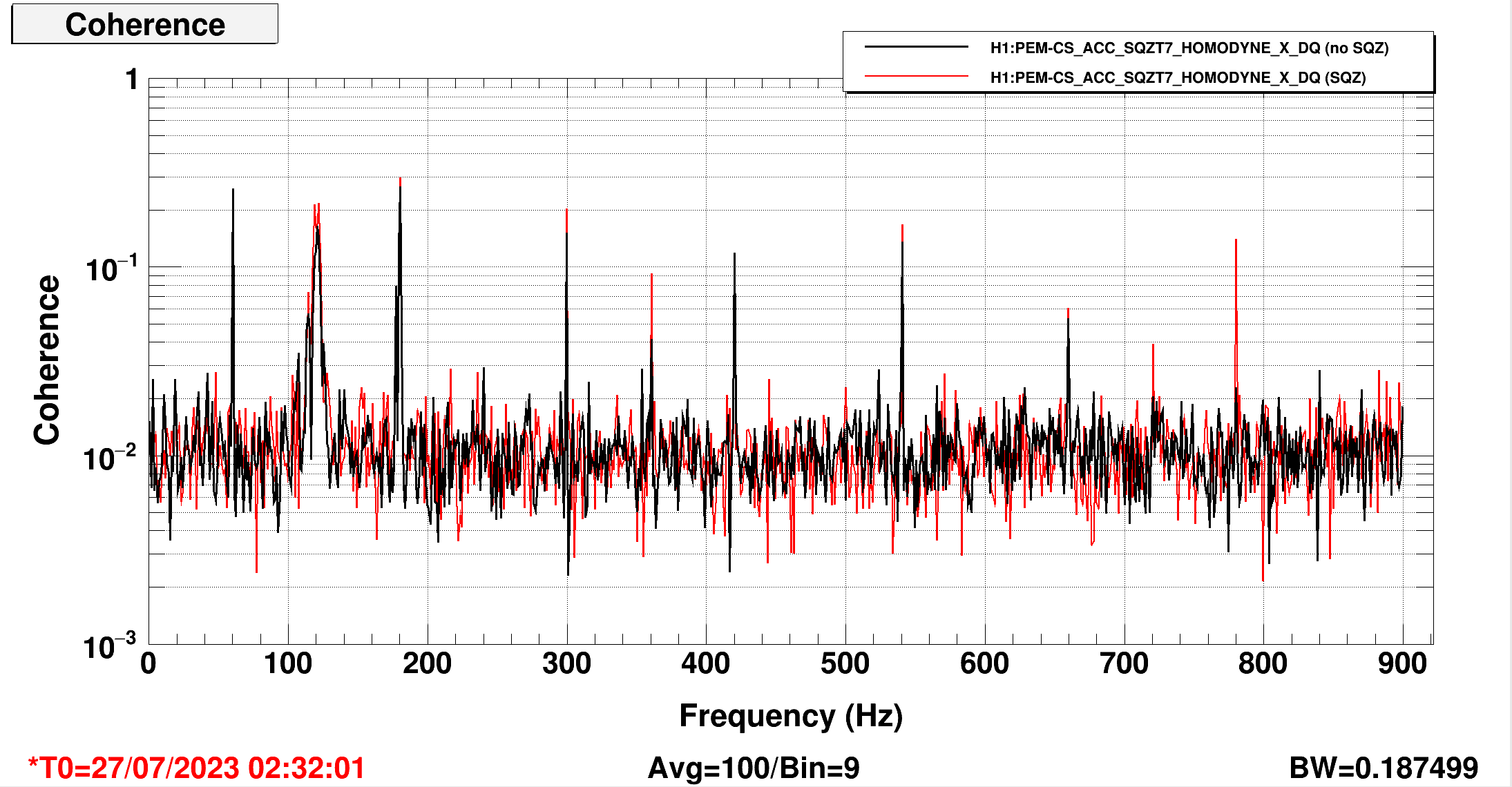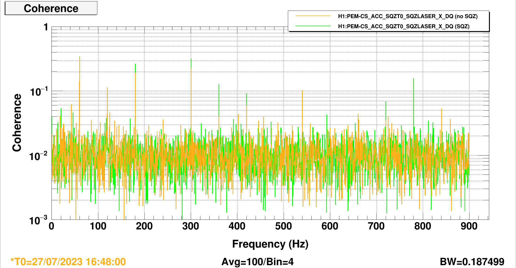 I am going to plot another set of coherences with the SQZ on/off on another day to see if we can see whether or not this 120 Hz noise goes up/down between the SQZ being on/off, it is not really clear in these first sets of plots I made.